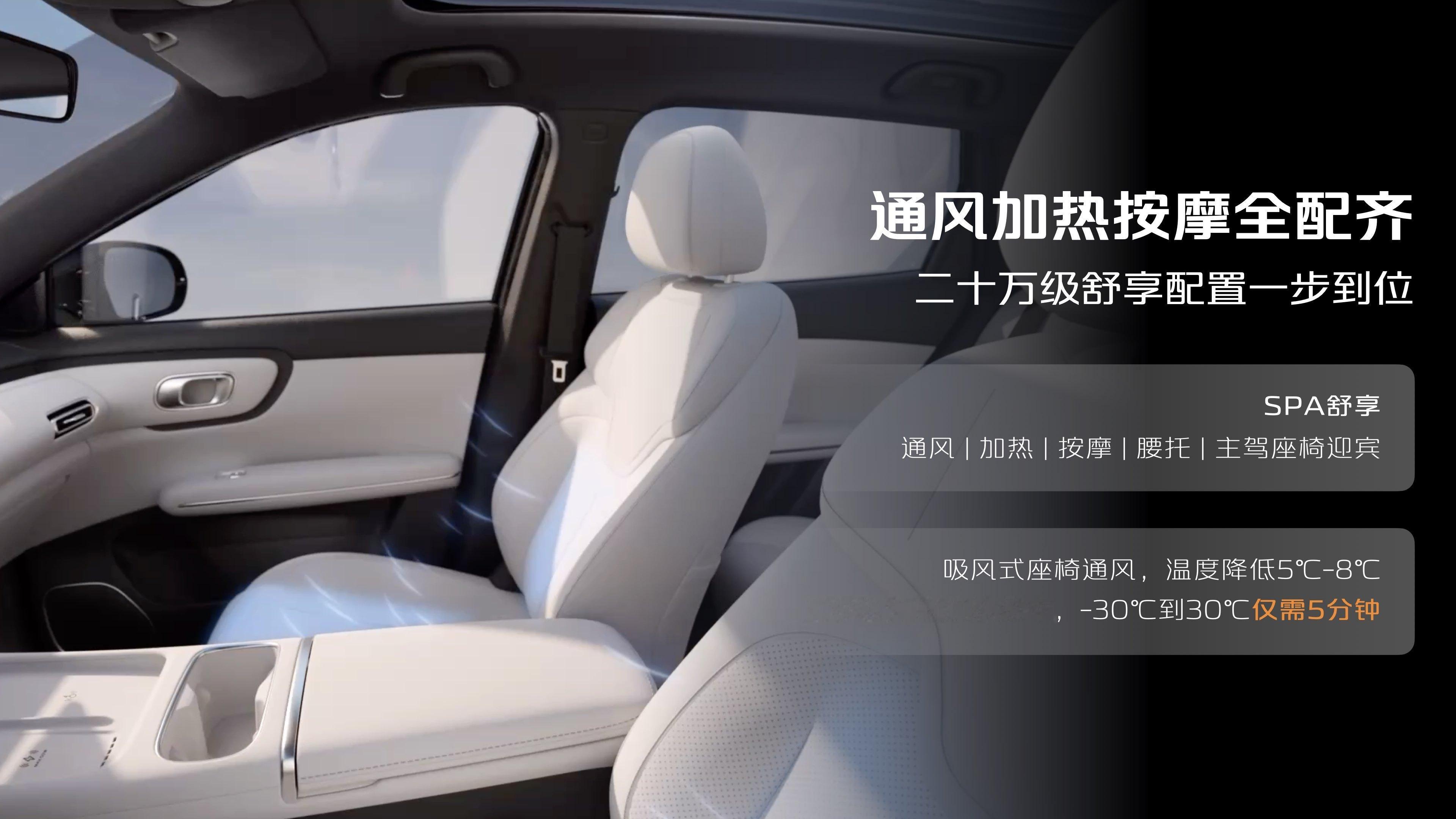 长安启源全新Q05智能化和舒适配置:座椅通风加热和按摩,165°放倒和电动腿托,