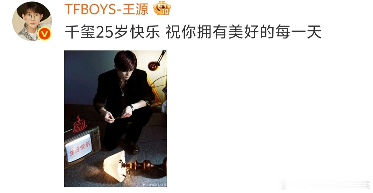 王俊凯王源祝福易烊千玺25岁生日祝千玺25岁生日快乐!从青涩少年到实力演员,你的