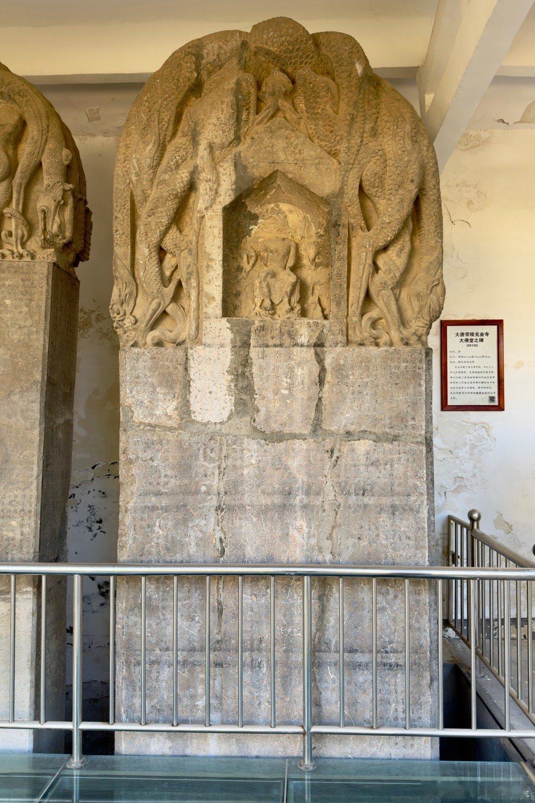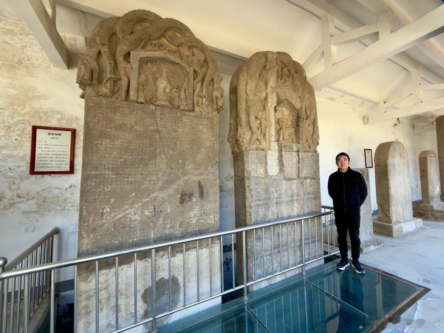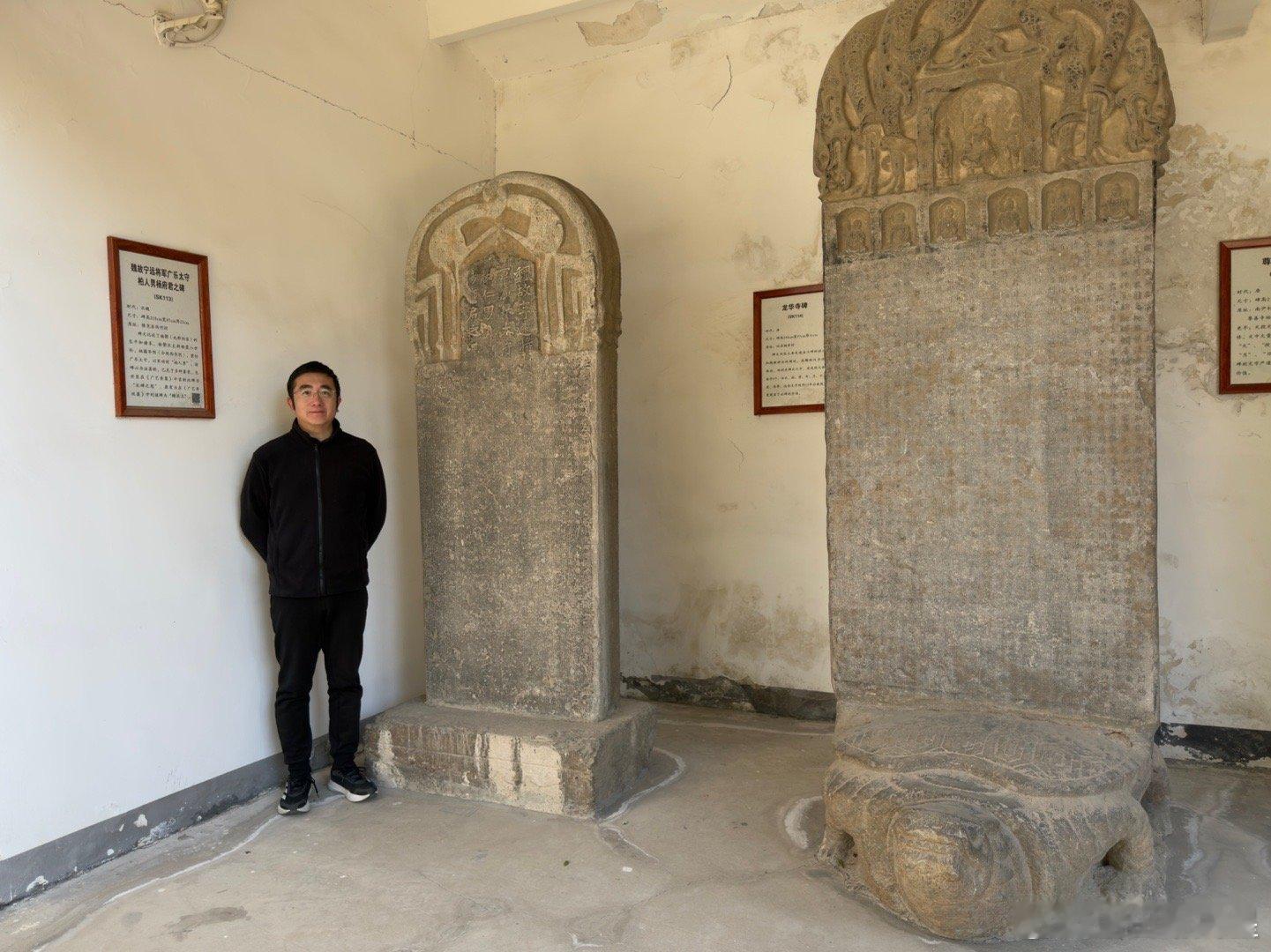 天皇供养隆尧石刻群。天皇最早是唐高宗的称呼,所以中国初唐有不少天皇字样的遗存。这个是隆尧石刻群的唐代草书碑《永康寺碑》,唐高宗天皇供养之物,非常珍贵。这个石刻群在隆尧县文保所内,不为人所知,但是里面的经典碑刻比比皆是。图4-6是三件属于国家第一批名碑名刻的精品,分别是:北魏故宁远将军广乐太守柏仁男杨府君之碑、大唐帝陵光业寺大佛堂之碑和唐龙华寺碑。其中光业寺碑刻立于唐开元十三年(725年),碑文记载了李唐皇室四代祖李熙、三代祖李天赐的陵寝营建过程,是确认隆尧为李唐祖籍地的核心史料。这块碑太珍贵,所以在六十年前被砸碎成十几块,被人拿去砌墙修井,改开之后文物局努力收集,勉强拼凑成型,但还有一块彻底失踪了。图8是隆尧唐祖陵的石狮,虽然毁容,但气势犹存。宝物亲见,合影留念
