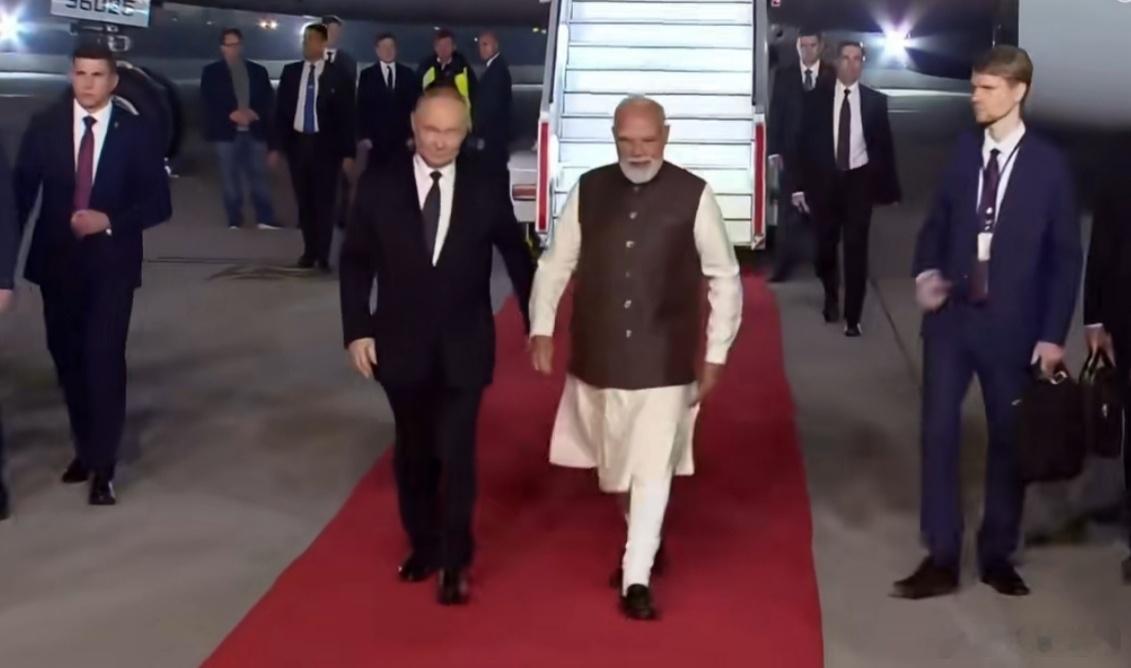 普京访问印度,莫迪亲自接机,俩人亲密相拥。
