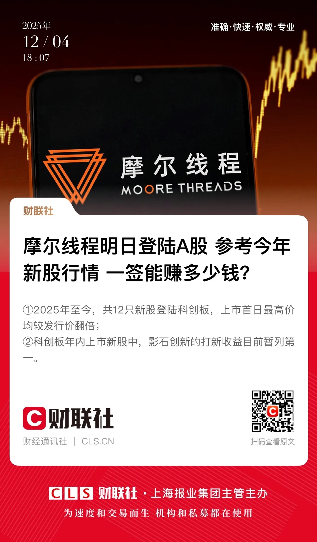 终极大猜想,明天摩尔线程上市一签可以盈利多少钱? 2025年度最贵新股摩尔线程明天就要首发上市了,上市价格114元,算是这两年非常贵的新股了,顶着巨大光环的摩尔线程自带流量,最近一直在吸引热度和流量,就算是今天大盘跳水的情况下,摩尔线程依然有一批粉丝,今天竟然有一些摩尔线程概念股闻风而动,走出了一波趋势。那么问题来了,明天正主摩尔线程就要正式上市了,究竟一签可以挣多少钱呢? 按照2025年度上市的这批科创板的股票来分析,最低涨幅也是接近1.5倍,最高涨幅是接近6倍,如果按照最低涨幅来算,一签大概可以挣9万左右;如果按照最高涨幅来算,一签可以挣35万左右,这真是超级大肉签啊。但是也不能这么简单粗暴的算,因为之前上市的科创板票都没有摩尔线程贵,目前摩尔线程114元的定价确实不低,如果要是顶格涨6倍,那就接近700的价格了,这个价格在A股属实比较离谱了,所以大概率是不太可能的。 参考目前市场的一些主流猜测,明天大概率这个票涨幅会在2-3倍之间,也就是一签大概盈利10-15万左右,这也是非常让人羡慕的结果了。看明天摩尔线程如何走了,能不能带动一下科创板和科技股的行情,让大盘重新回到正轨,让我们拭目以待!