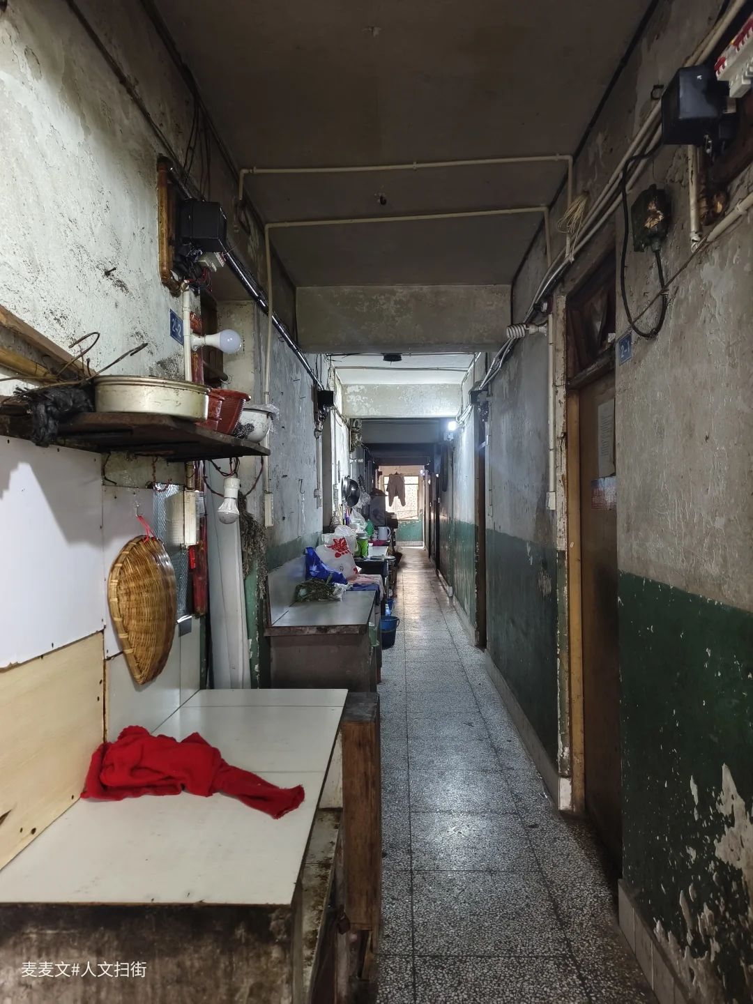 走进这栋80年代修建的某国企单工宿舍楼,扑面而来的是浓郁的岁月气息。目光不经意间落在地面,一块熊猫图案的马赛克地板砖瞬间抓住了我的视线。那是1987年3月竣工留下的印记,憨态可掬的熊猫以简洁明快的黑白马赛克拼贴而成,仿佛在昏暗的光影中微笑着。 步入二楼,光线昏暗得如同被岁月滤镜处理过,让整个空间都蒙上了一层怀旧的色彩。筒子楼的格局,使得过道自然而然地充当起了厨房的角色。各种锅碗瓢盆随意摆放着,烹饪时的烟火气在这狭窄的过道里弥漫、萦绕,交织出独属于那个时代的生活韵味。