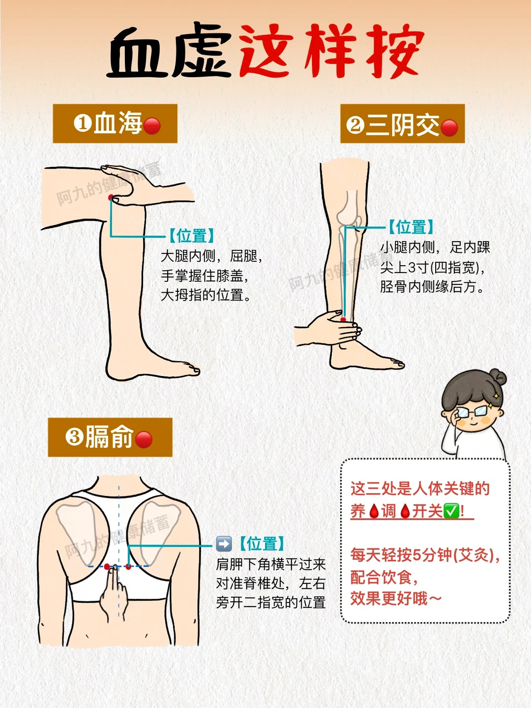 [向右R]除了饮食外,有三个养血开关,没事多按摩按摩,