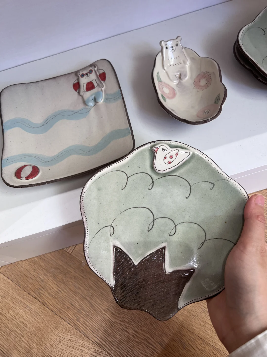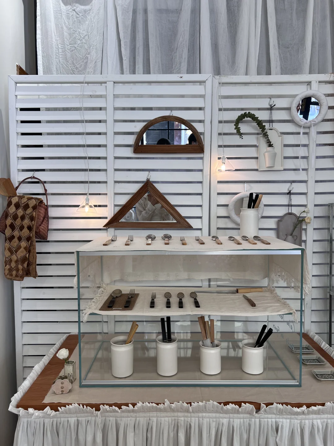 找到一家治🌧️的日系杂货店 随手拿起一个货架上的陶瓷杯碟都被可爱的不行 瑕疵品还很用心的贴上了箭头 柔软的手工刺绣杯垫 每一个图案都不一样 简约舒适的店里放着轻音乐 还有个小小的院子 芭蕉旁的秋千和小小水池里的喷泉⛲️ 好舒服惬意的氛围小店~