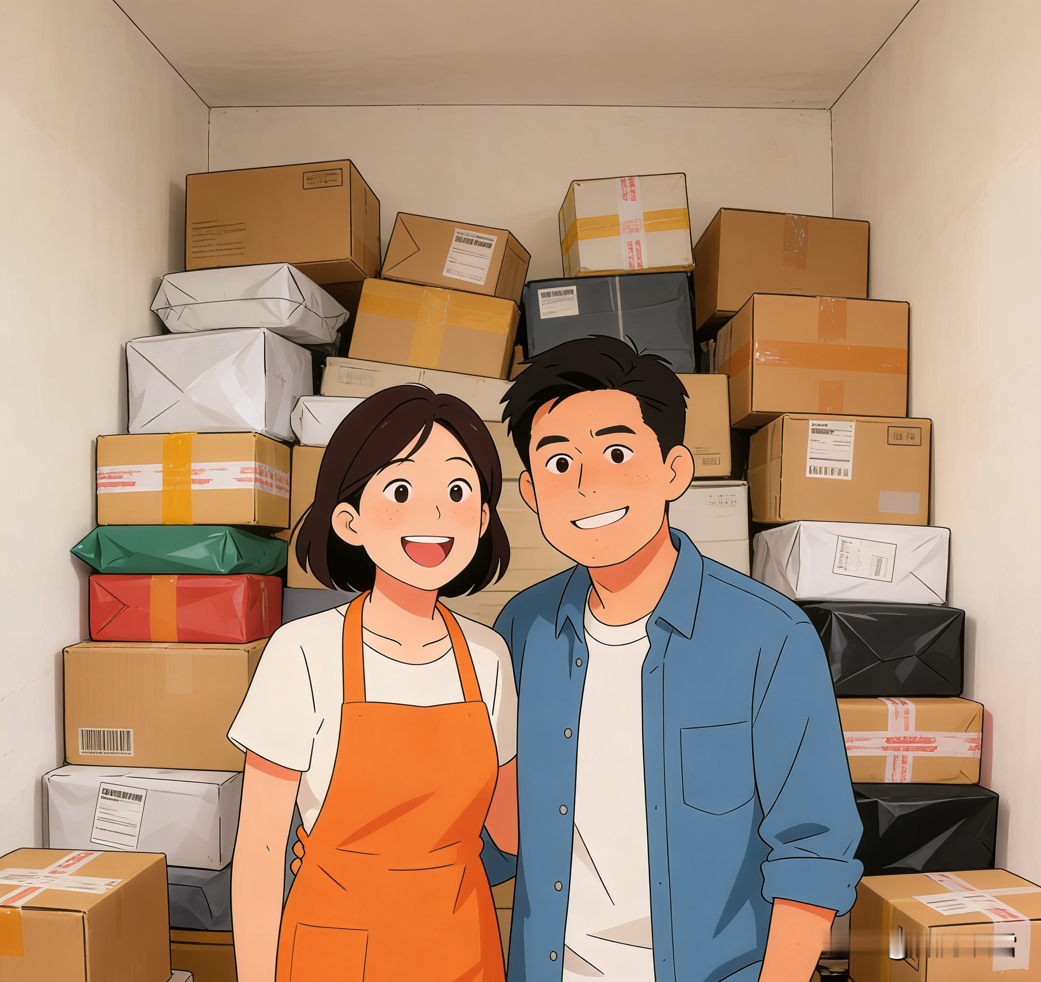 快递堆成山,老公调侃:“再买,家里要堆不下啦!”
