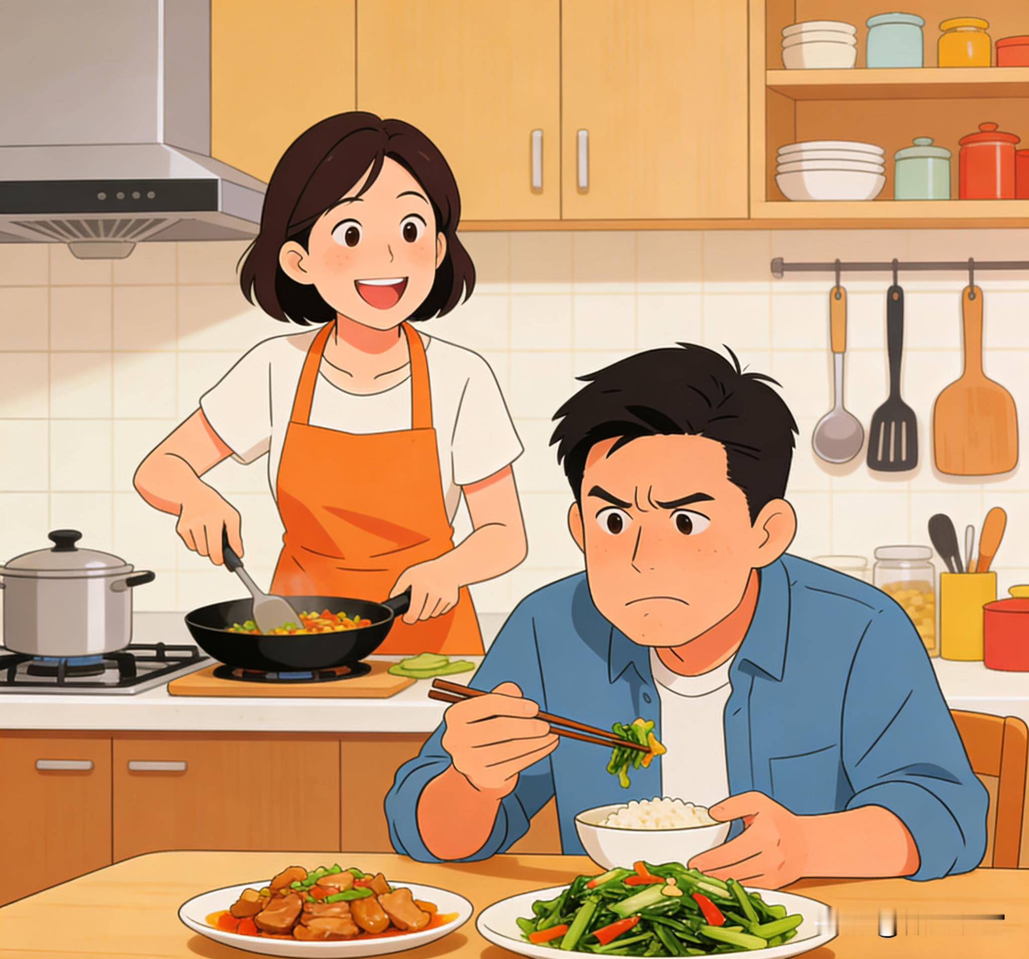 老婆做饭,咸得能腌咸菜。