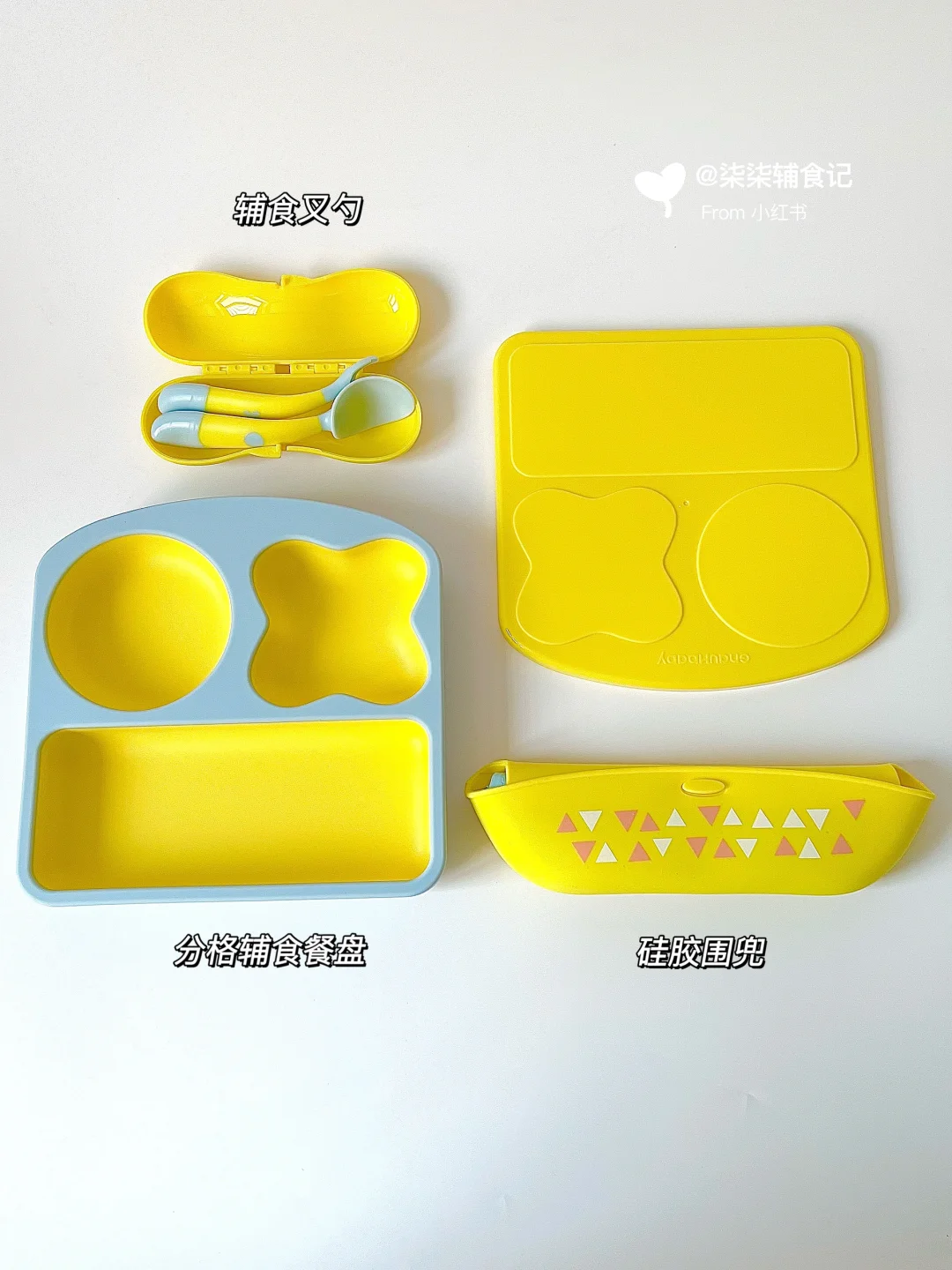🔸分格餐盘、硅胶围兜、辅食叉勺