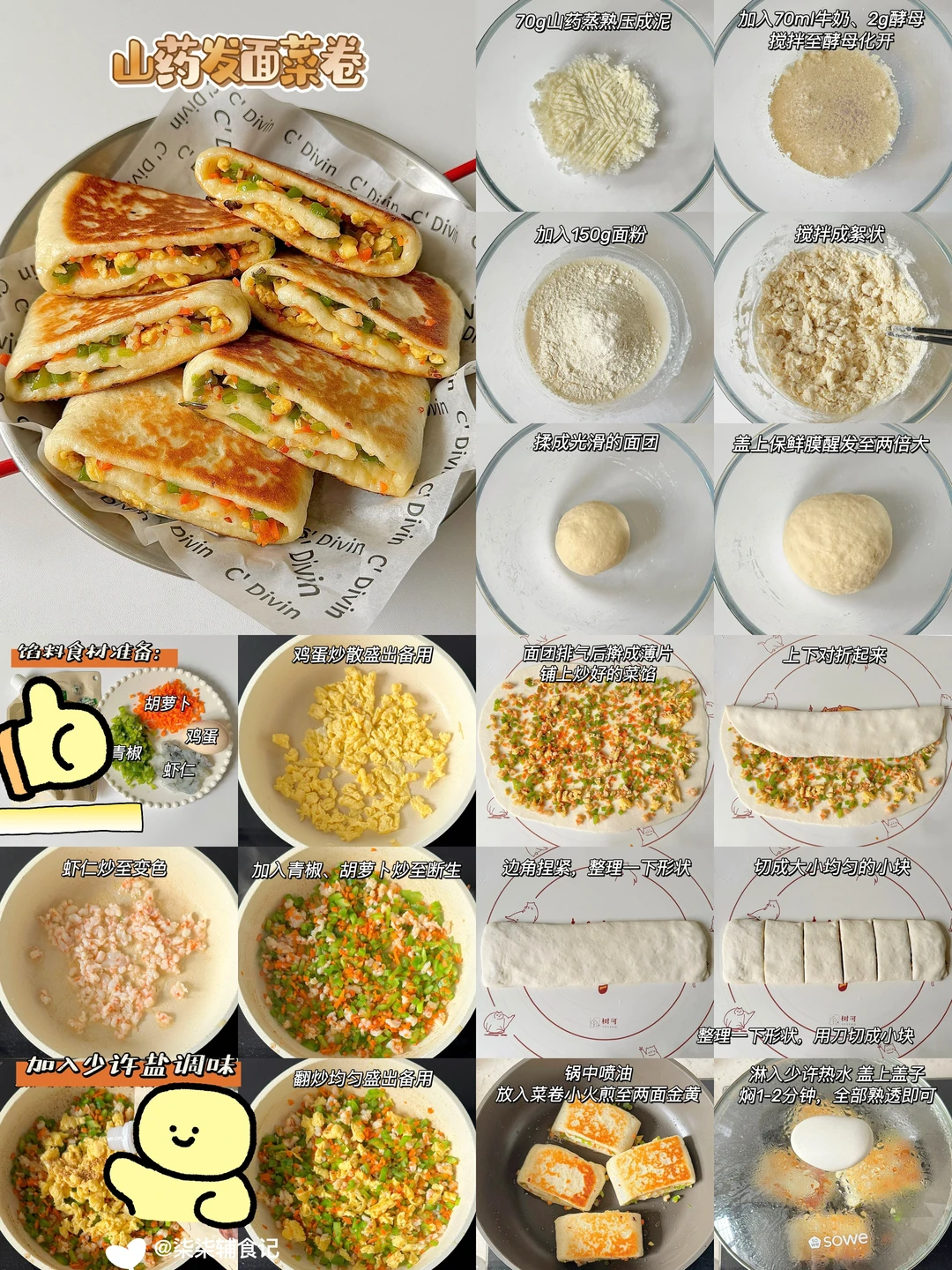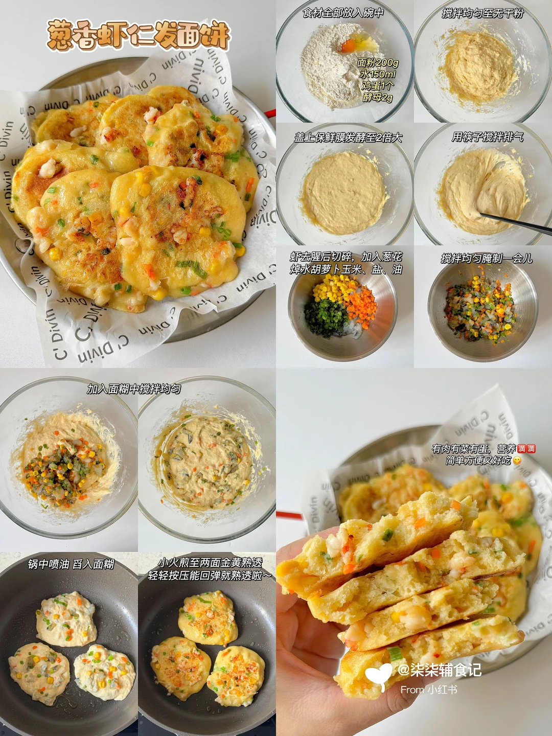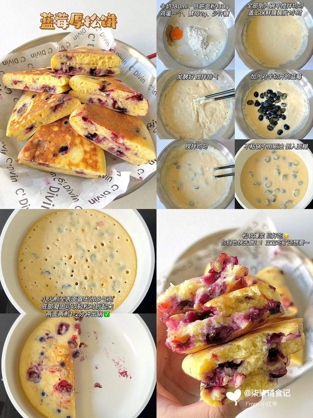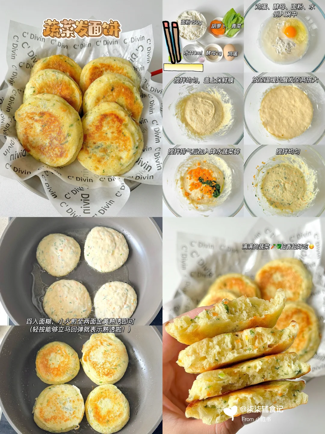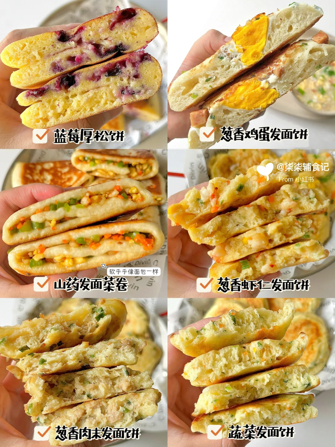 简单易做,营养好吃😋大人小孩都爱吃~ 一次发酵,做法简单,你们也快去试试呀!! 给宝宝、家人当早餐再适合不过了~ 🔸蓝莓厚松饼 🔸蔬菜发面饼 🔸山药发面菜卷 🔸葱香鸡蛋发面饼 🔸葱香肉末发面饼 🔸葱香虾仁发面饼 🌟具体做法详见图文~ 🔺秋冬季温度低醒发时间需要50分钟-1个小时,也可以放温水上醒发会更快 🔺蒸之前全程水温不要超过40度,温度太高会导致酵母失效发不起来 🔺食材大小根据宝宝咀嚼能力处理 ️🔺小宝宝不加任何调味品就可以啦