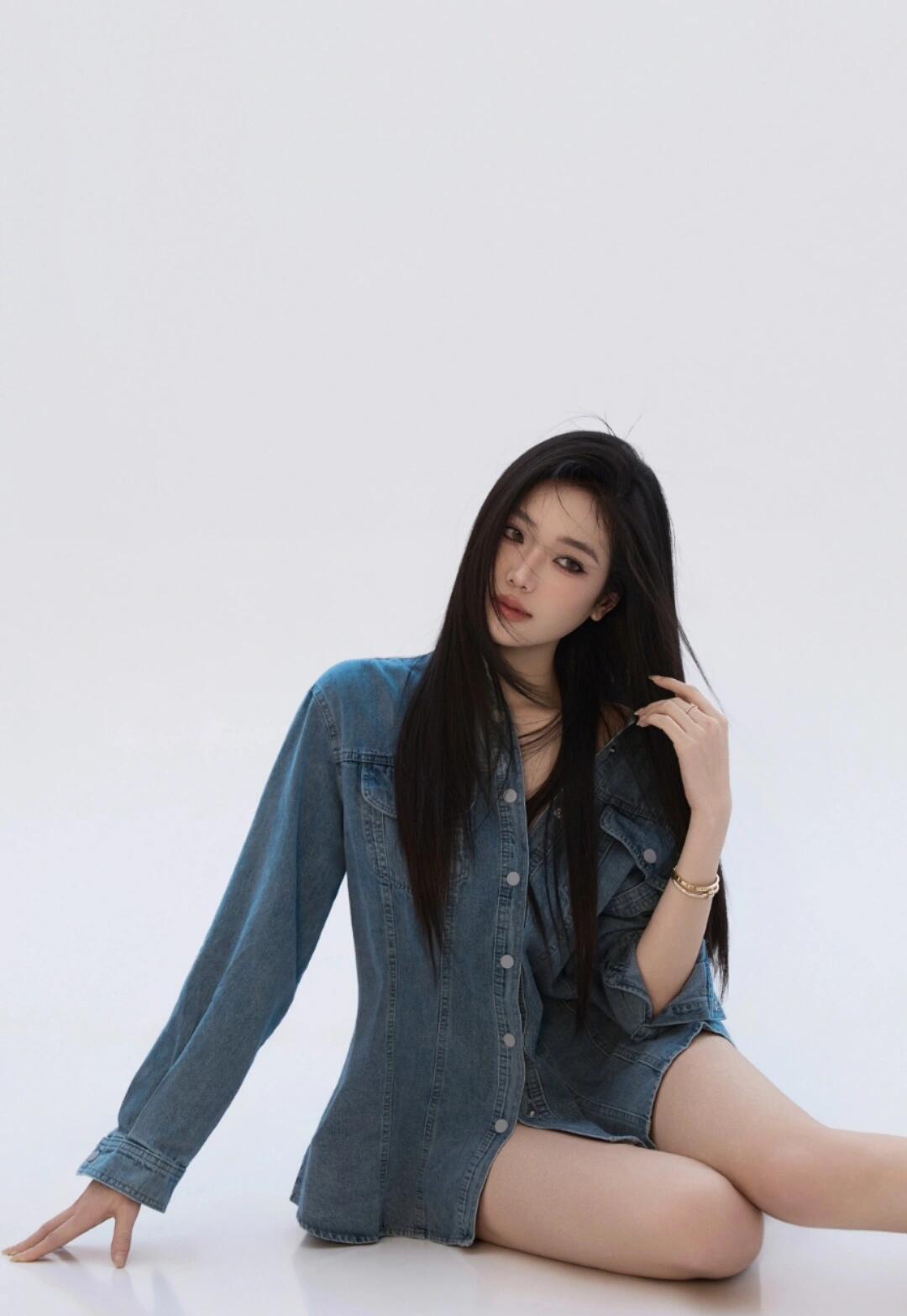 纯色背景写真的精髓,是“用留白装情绪”。 这组图里,浅白背景像张干净的纸,只靠一件牛仔衬衫和松弛的肢体就撑满氛围:或坐或蹲,肢体舒展但不夸张,手的姿势(轻拨头发/自然撑地)都是“下意识的放松”,没有硬凹的曲线,反而更显舒展。晒图笔记大赛 妆容也走“轻透挂”:淡眉+裸色唇,只在眼尾扫点微醺腮红,让情绪从眼神和肢体里透出来,而不是靠浓妆抢镜。 纯色背景的妙处,就是把所有干扰都去掉,让“人的状态”成为主角——不用堆道具、不用搞复杂灯光,只要抓住松弛的瞬间,留白里全是故事感。