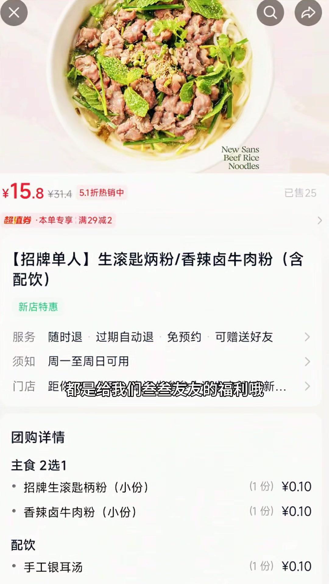 粉的口感很Q弹,牛叁叁的生滚牛肉粉和生滚匙柄粉都值得试试,汤底熬得很鲜。重点是可以自己加喜欢的佐料,薄荷、香菜想加多少加多少,自由搭配超满足。 银耳汤里还有碎米,清甜解腻,吃完粉再来一碗,胃里暖暖的超舒服。粉不够还能免费续,开车20公里专门来吃都觉得值,比外卖划算还干净。 附近的友友们别犹豫,赶紧去团购试试,左下角就能抢福利,这羊毛不薅白不薅~