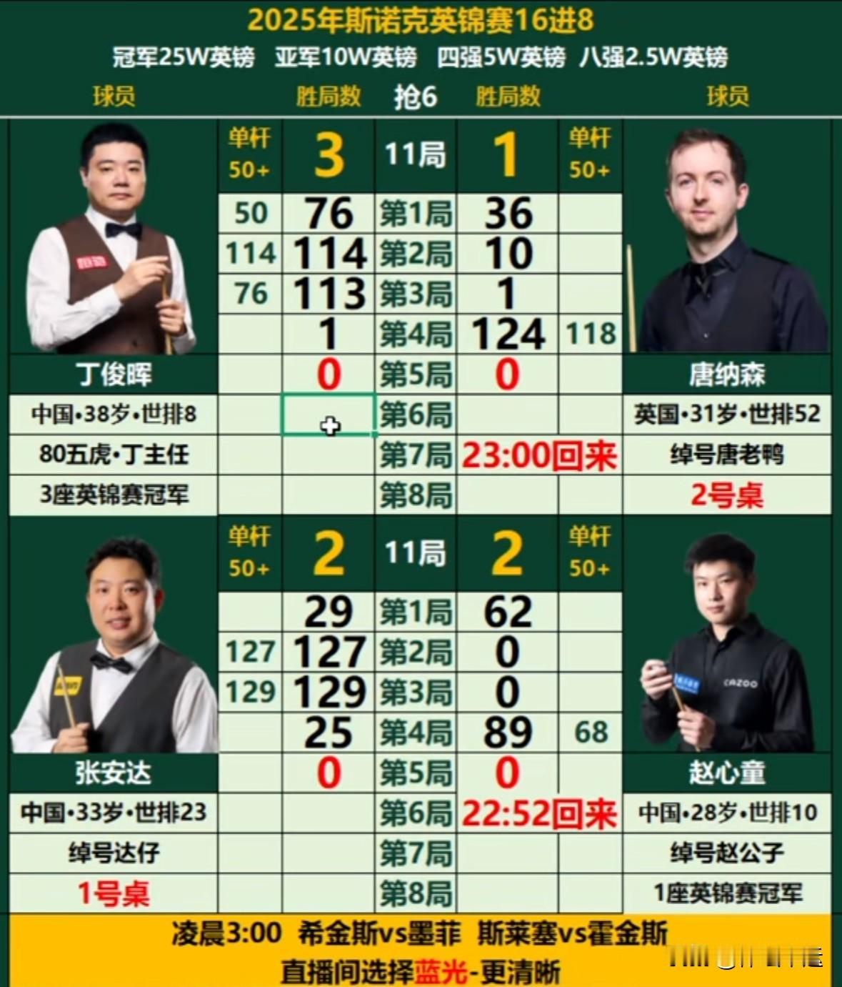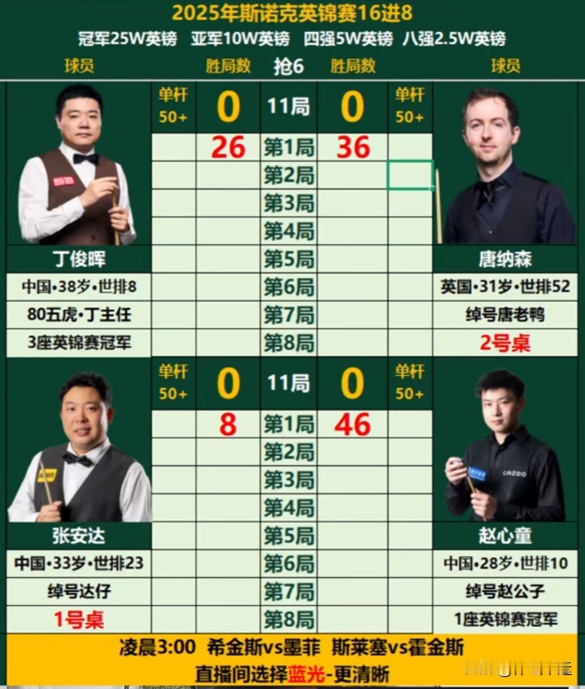 刚刚🔚的斯诺克英锦赛次轮1/8决赛,这场中国德比太让人意外了! 新科世锦赛冠军赵心童,世界排名第十,不久前还拿了邀请赛冠军,首轮也轻松淘汰龙泽煌。而张安达从资格赛突围,首轮逆转加里·威尔逊。 上半场两人2-2打平,张安达还轰出两杆破百;可下半场完全一边倒,赵心童低级失误不断,第八局粉球离谱打丢。张安达势如破竹,一波4连击6-2强势晋级! 赵心童这状态起伏太大,缺乏稳定性,真让人摸不着头脑。张安达则连续两轮掀翻种子球员,强势晋级八强。 斯诺克八强争霸