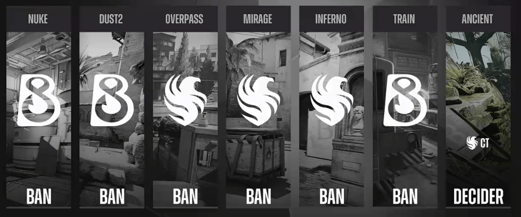 虎扑12月04日讯布达佩斯Major第三阶段瑞士轮第一轮,Falcons对阵B8地图BP: