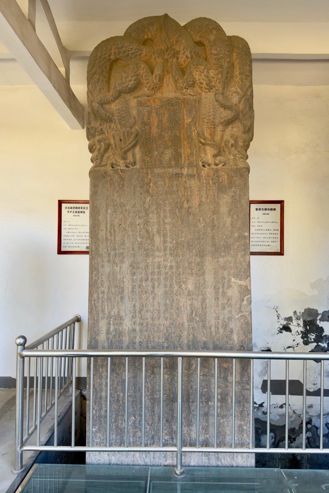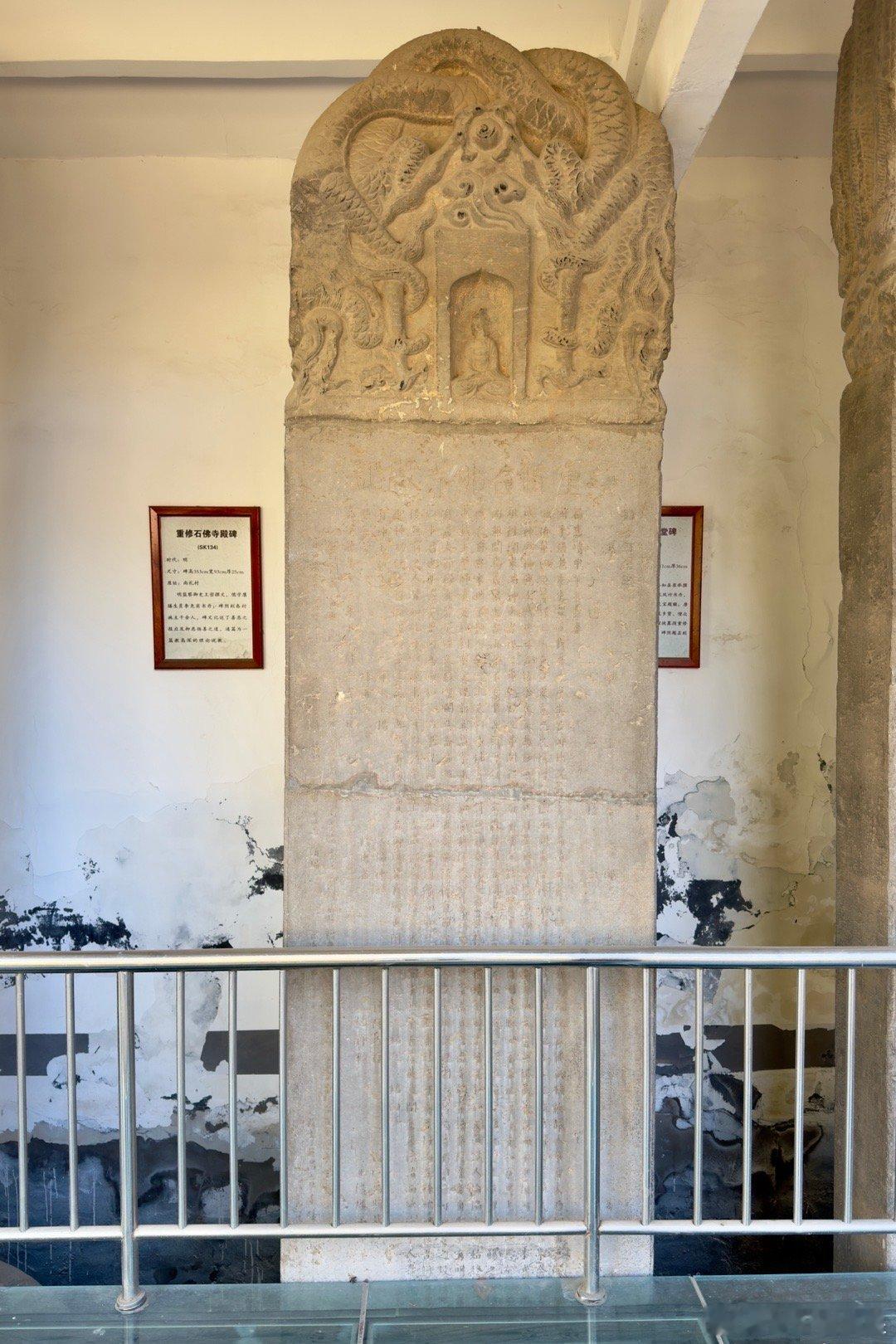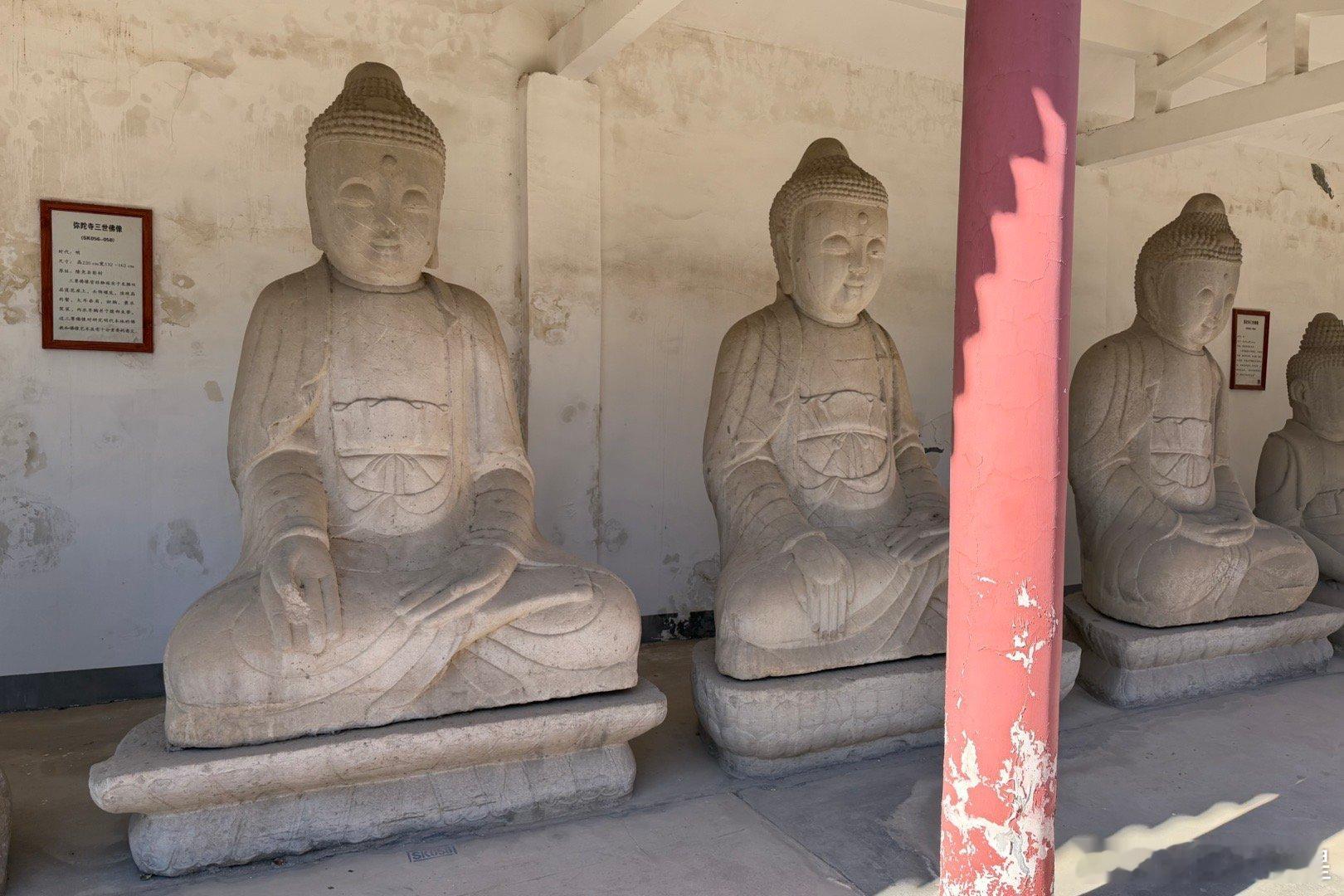 隆尧石刻群。金代到明代的遗物。图3-8都是国家第一批名碑名刻。图2是三千佛碑,建于金大安三年(1211)。图3是元代王赟碑(大元故武略将军后卫千户王君墓碑铭,建于元成宗元贞元年,1295)。这个人的父亲王坚是隆尧这个地方40年的县令,其实就是武装地主,他后来成了武将,参与过灭宋战争。图4是尧山孔氏先德之碑,立于元大德元年(1279年)。图5是尧山孔氏先茔之碑,立于延祐三年(1316年)。碑文记载孔子后裔孔璠随父落户尧山孔岗(相传孔子周游列国曾驻跸于此)讲学,政绩卓著,曾任陕西河渠副使,率众重修郑国渠,灌溉良田4500顷,使关中大富,官至南阳知府。图6是元代《唐山县文庙门道之碑》,建于元至元二年(1336年),讲县令苑寿昌扩建文庙的故事。图7是《光武灵应碑》。元至正十六年(1356年)立,翰林大学士冯子振撰文,赞美光武帝刘秀在这一带活动、中兴汉室的史实,有较高的历史和书法艺术价值。图8是《重修石佛寺殿记碑》。明嘉靖十三年(1534年)立。该碑记录了很多明代佛教禅门临济宗的内容,碑阴刻有临济派传承关系,按祖师特定文字排列师徒辈分,其先后顺序为:“惠如明崇、师智立正、远继朝承、普显妙用”,是研究临济宗的珍贵史料。图9是明代弥陀寺三世佛石像,尺寸很大。宝物亲见,合影留念谢田看宝