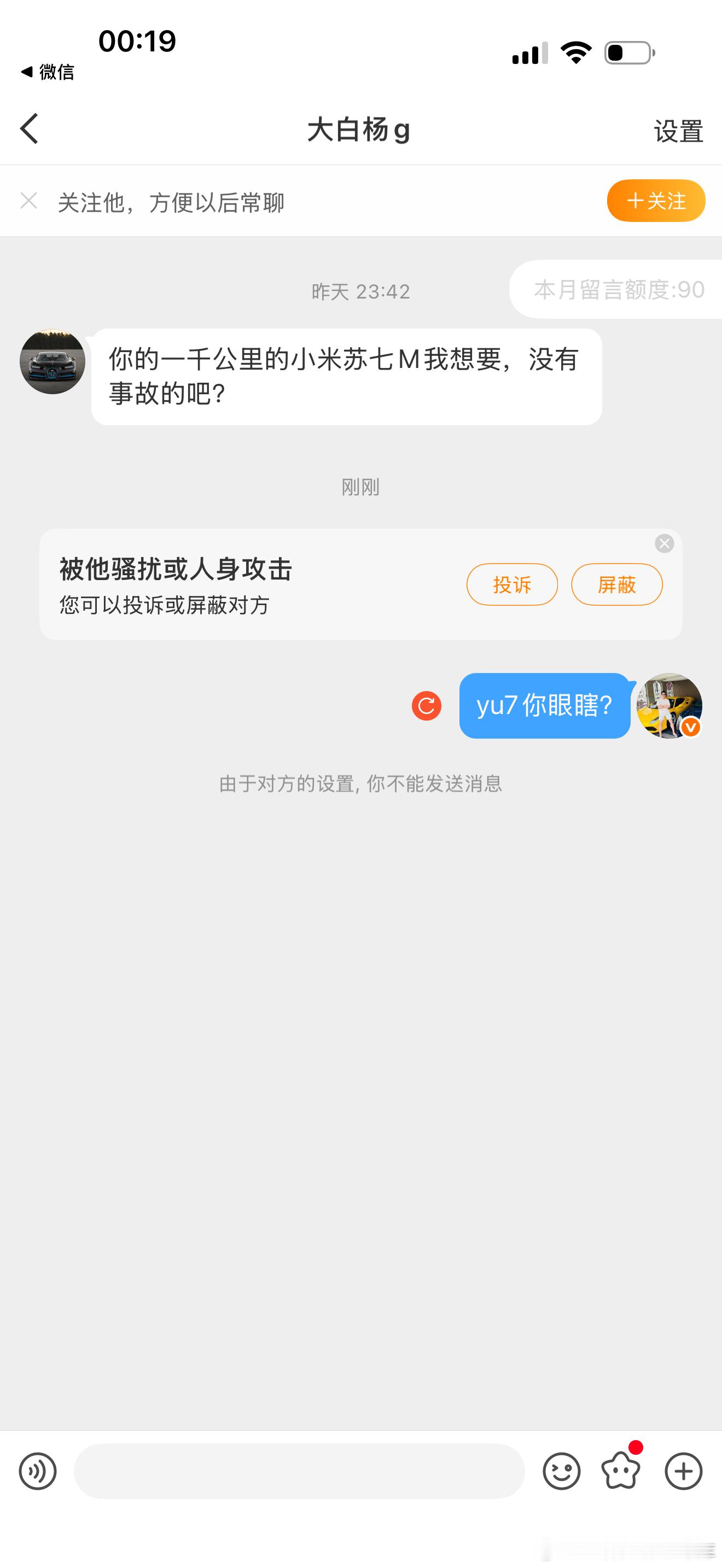 只是分享了一下小米行情没想到那么多人破防。这个哈批不是说要吗?怎么联系不上你??骗子DZJS啊。年纪轻轻眼睛还瞎了。说了我有一台yu7。转头私信发苏七。然后就拉黑。装豪气转头拉黑咋回事?有钱吗 大v聊车 小米汽车保值率光速下滑 3开头的ultra一大堆这是既定事实咋就破防了