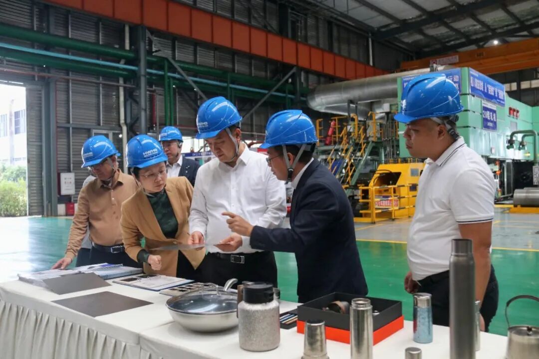 调研组一行深入钛材生产车间,实地视察了钛材生产线及钛材产品,详细了解公司钛材产线建设、技术创新、生产经营及市场拓展等方面情况。胡爱国围绕公司智能制造、产品应用和市场趋势等方面情况向调研组作了详细汇报。