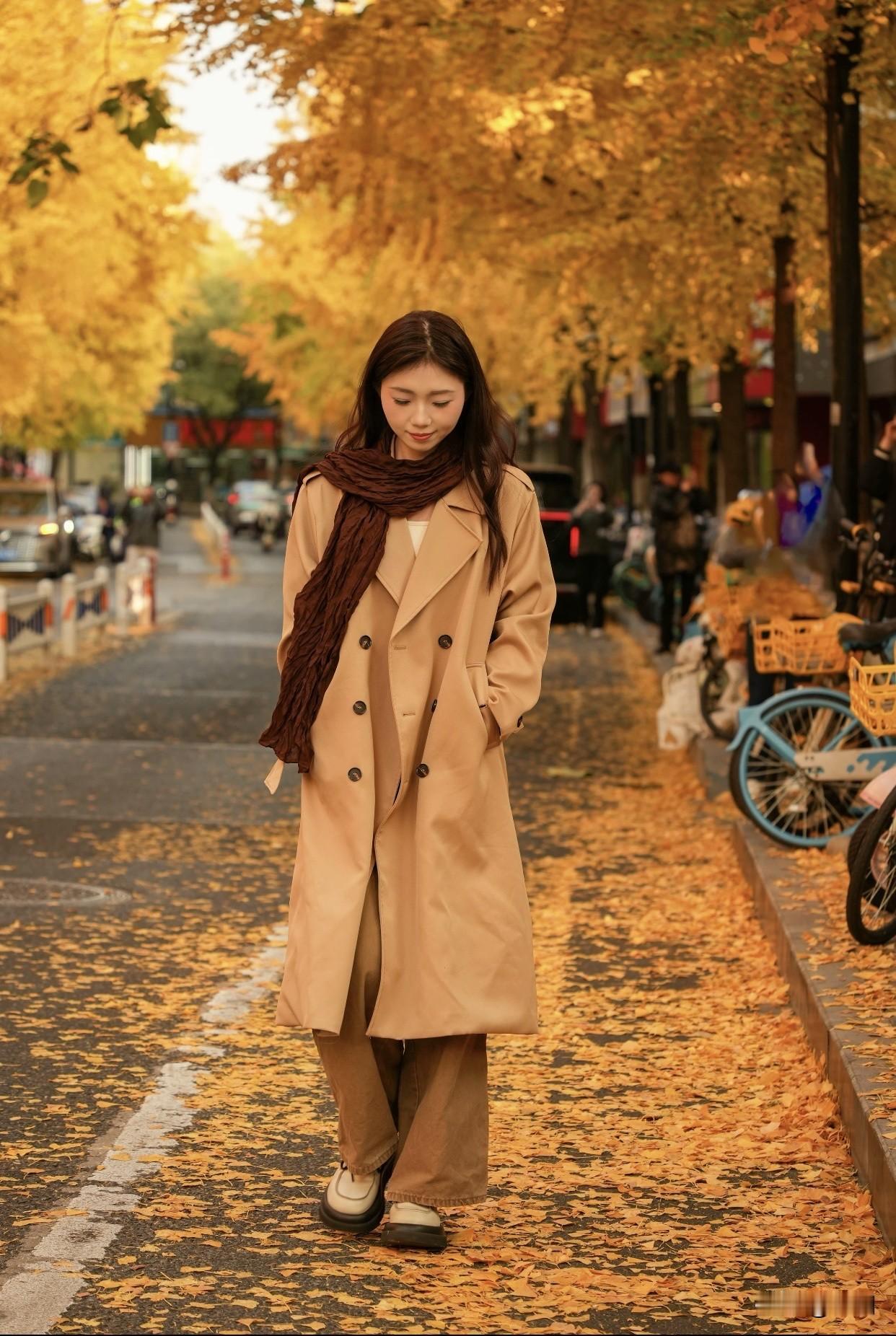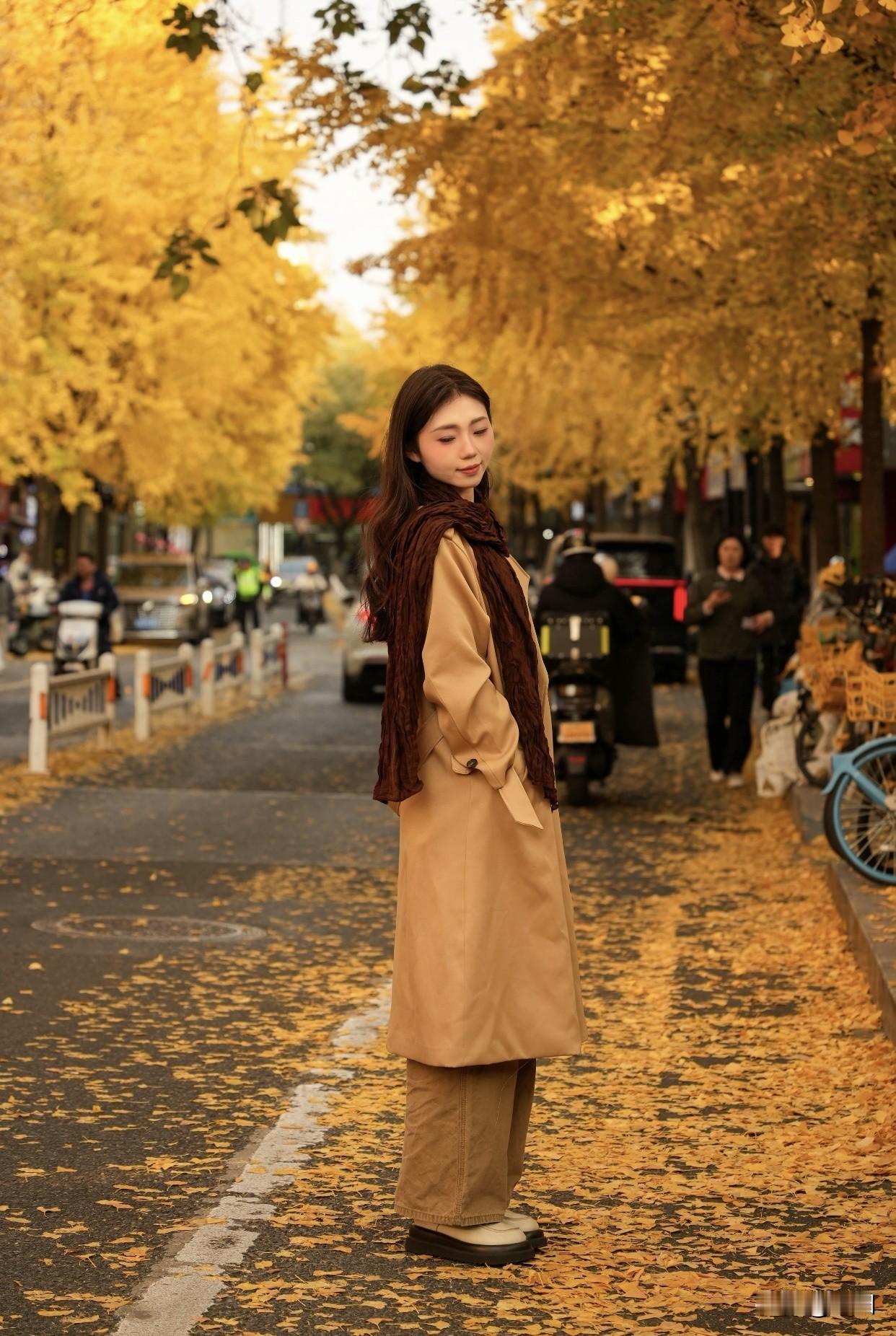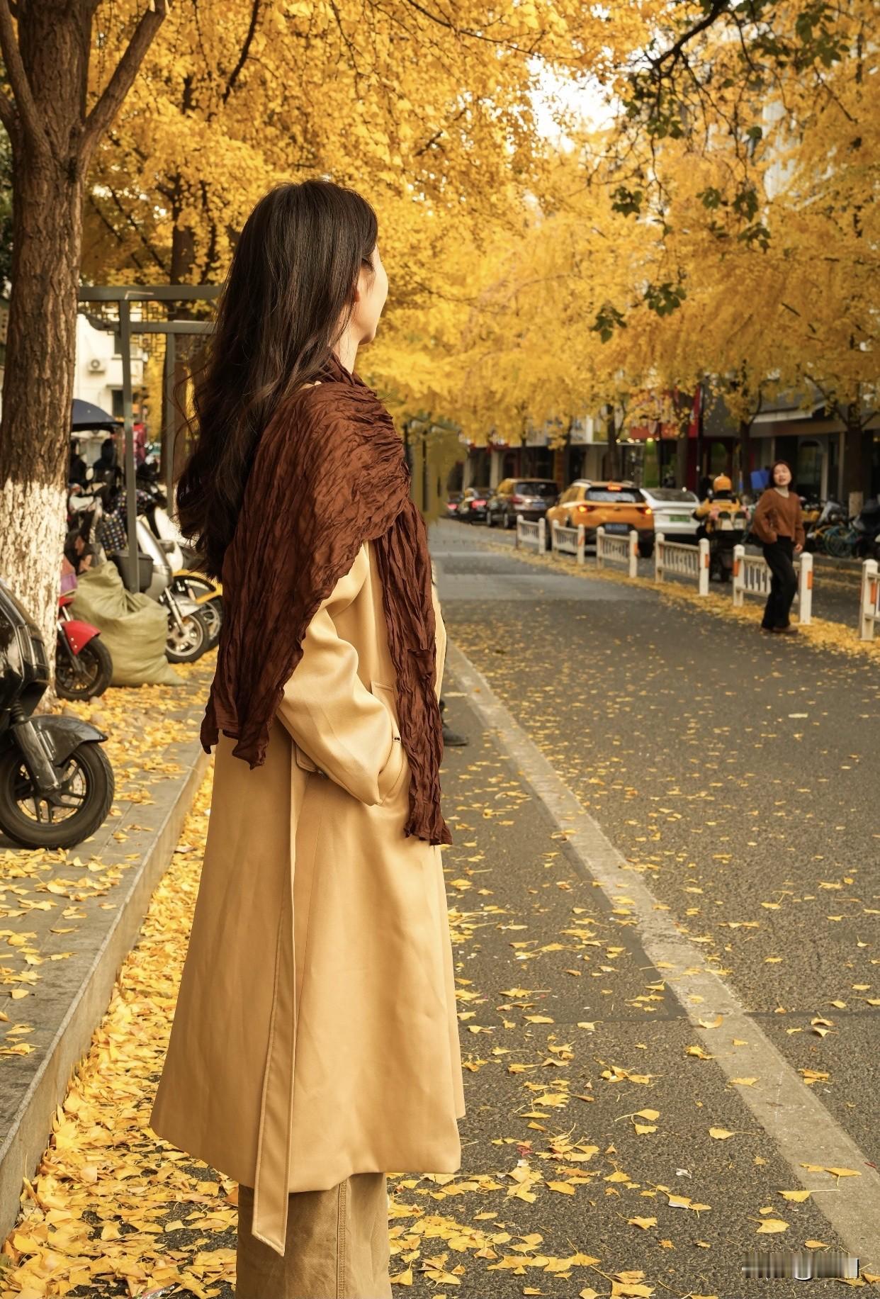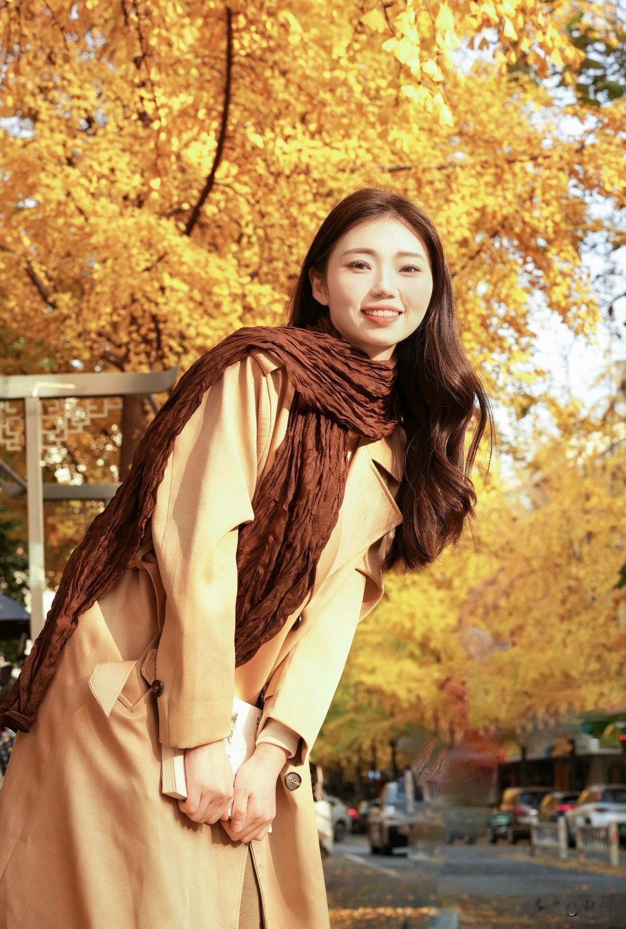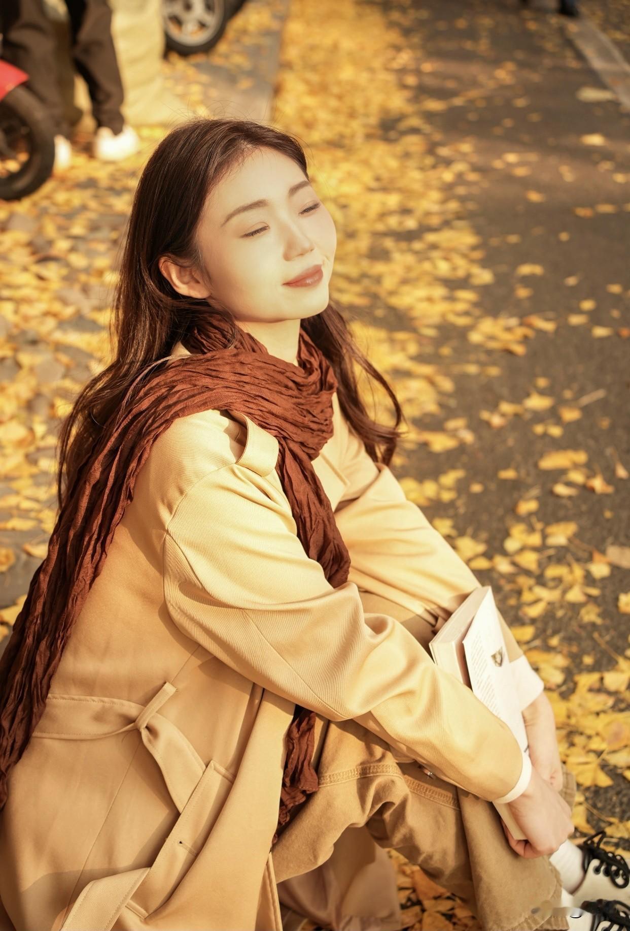 晒晒少女靓影秋风落叶舞,美人倚树思。