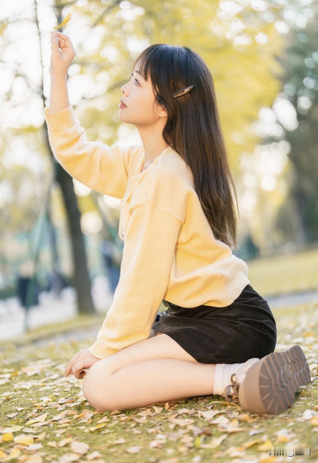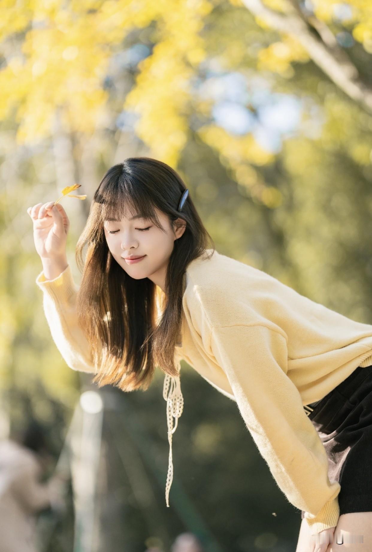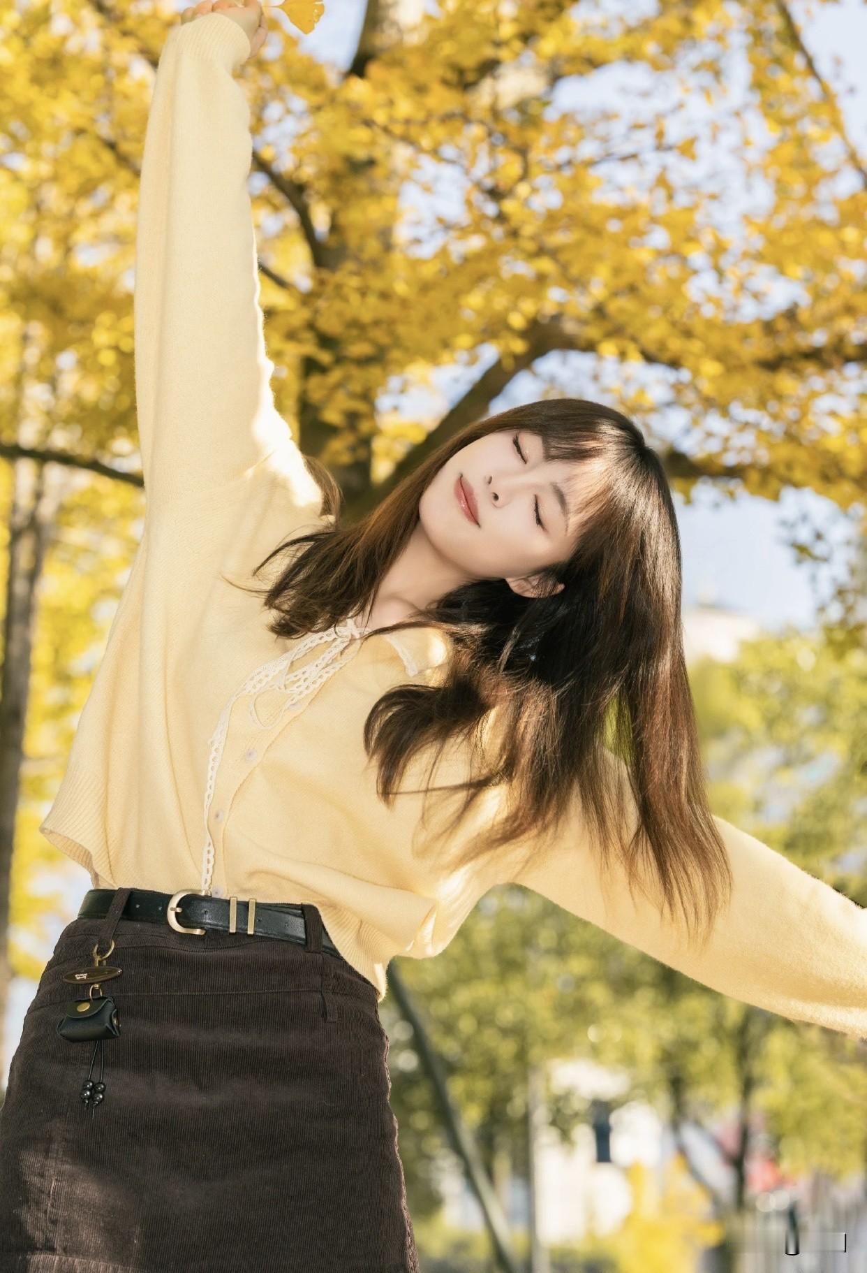 怎么穿搭会让人比较显温柔秋日暖阳下,优雅女子闭眼享受,树叶轻拂发梢,唯美画面。