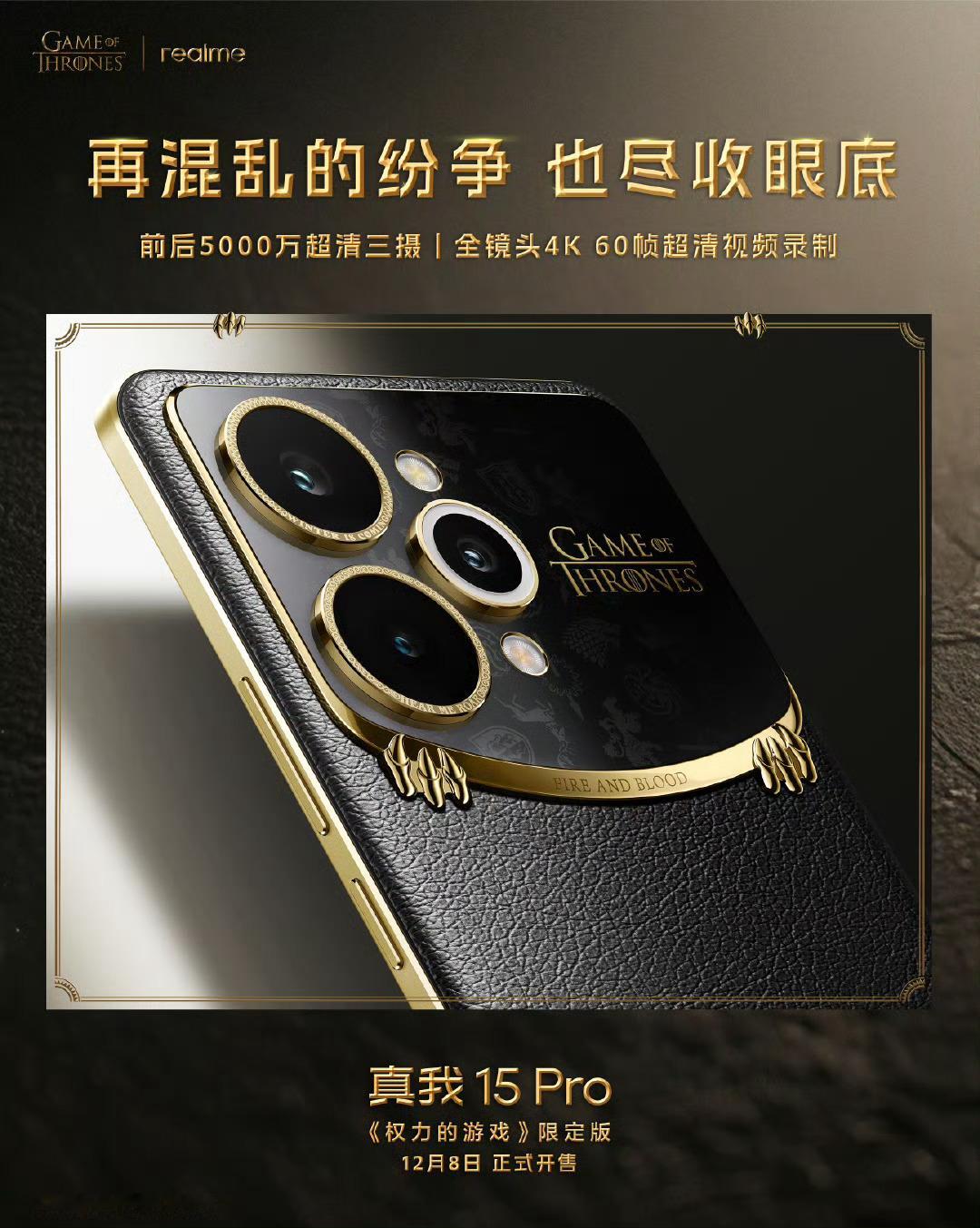 数码闲聊站 真我15 Pro《权利的游戏》限定版,12月8日开售!还有定制珍藏卡