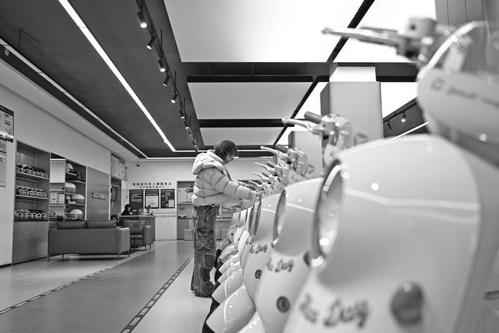 昨天,在市区禾兴南路一家电动自行车零售专卖店内,市民正在挑选新到货的新国标电动自行车。据了解,自2025年12月1日起,所有销售的电动自行车产品均须符合新版强制性国家标准,“旧国标”电动自行车全面停售。