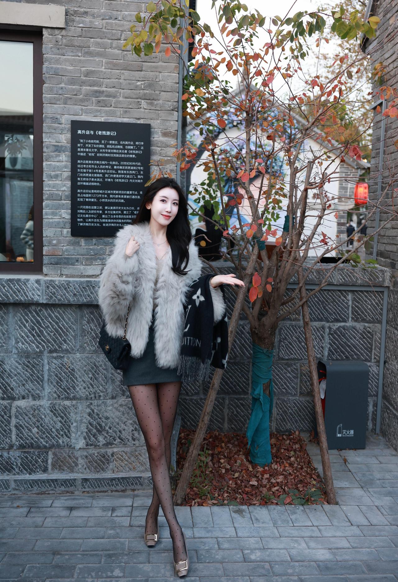 ✅上联:残枫覆老院砖阶,狐裘俏裹摩登态 🍑求下联…………………… 《沁园春·老院摩登闲逛》 巷口风捎秋凉,砖垒老墙,叶碎院旁。看残枫偷坠,粘了衣角;旧牌斜挂,字渍轻霜。 俏立阶前,毛裘裹满,活像绒球暖得慌。波尖袜,配短裙收胯,越显排场。 肩捎纹毯(LV围巾)晃荡,挎黑包菱格锃亮。恰“一尺花园”,门楣敞亮;拱圈题字,墨色泛黄。旋个轻身,笑涡沾蜜,惹得行人偷眼望。 这光景,把摩登揉进古院,趣味儿直冒浆——既裹得暖如棉垛,又俏得晃人眼眶,老墙根儿都沾了三分时尚光。