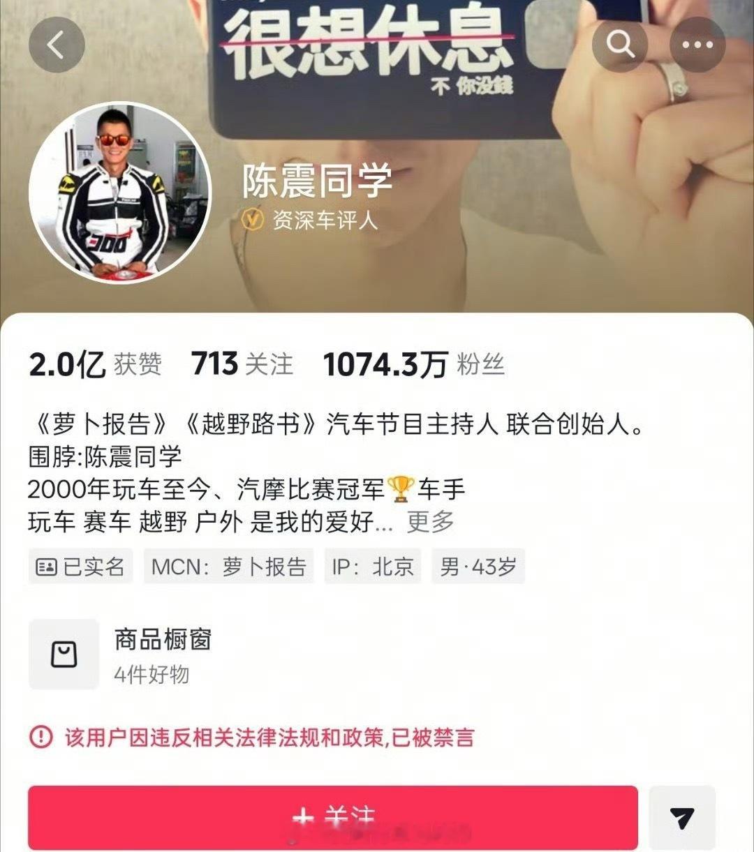 汽车博主陈震被全网禁言!