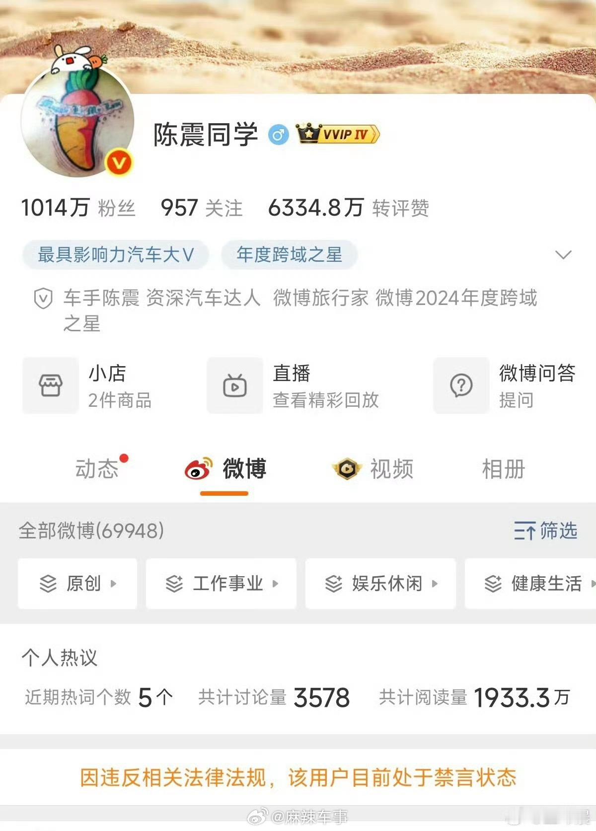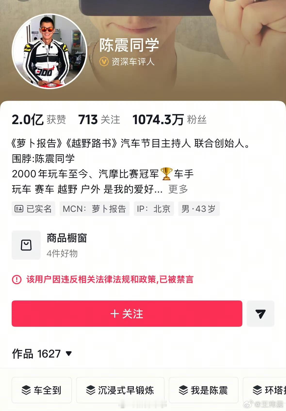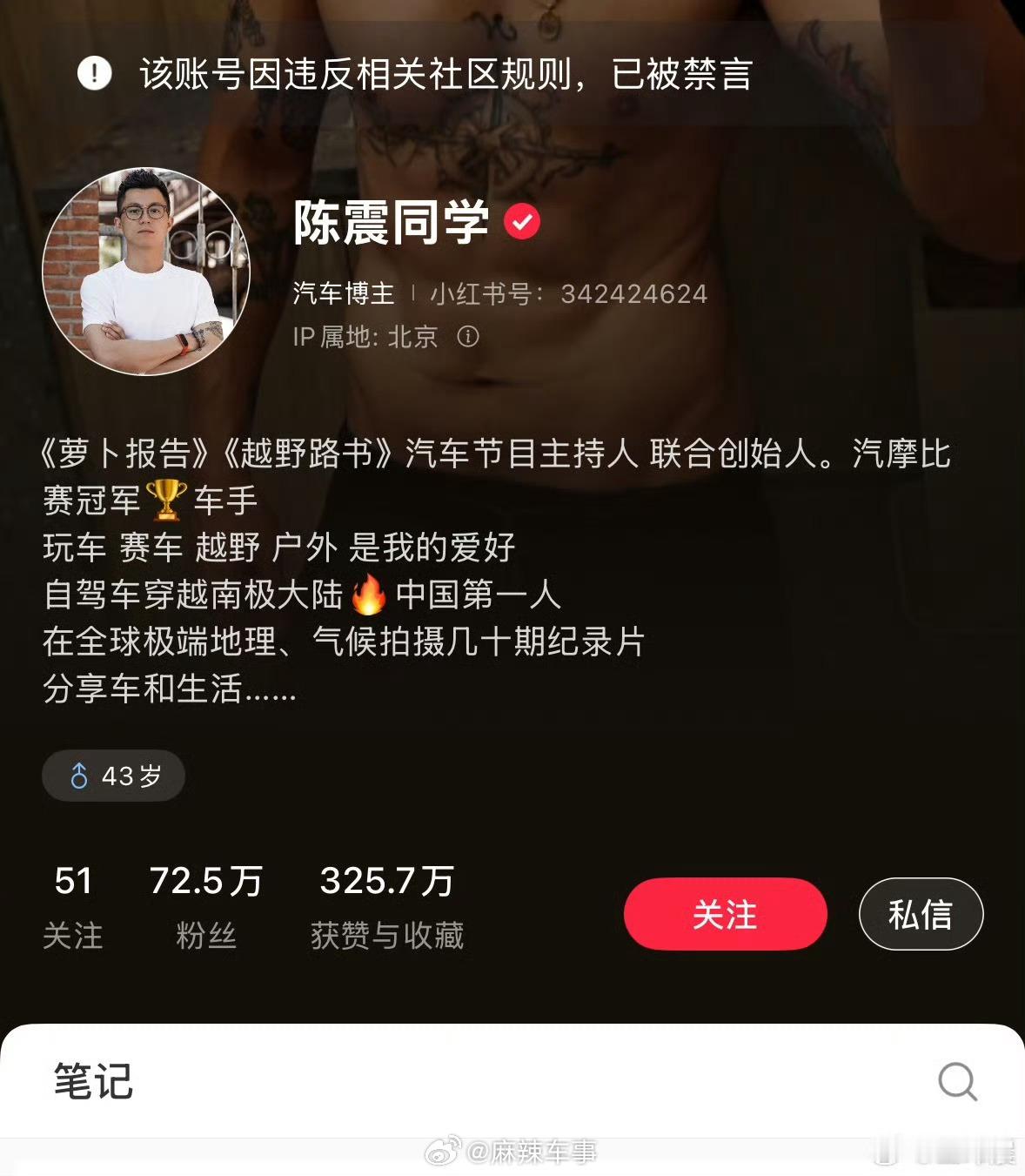 陈震全平台被禁言。他是几乎每天都在阴阳某大厂。加上不停挂极端言论,煽动群体对立。
