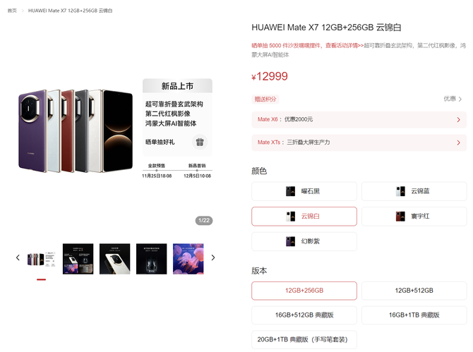 2025年12月5日10:08,华为年度旗舰折叠屏手机MateX7正式迎来全渠道开售,官方定价12999元起,凭借全新玄武架构、第二代红枫影像系统以及鸿蒙生态专属权益,为高端折叠屏市场带来重磅升级。无论是非遗工艺与现代科技的融合设计,还是比肩直板旗舰的影像表现,都让这款新品成为年末最受关注的高端机型之一。