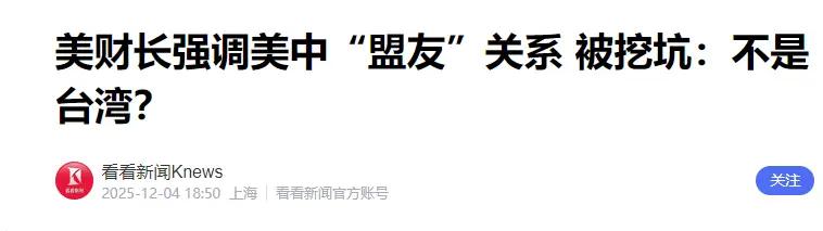 2025年12月初,特朗普政府签署所谓“深化美台关系”法案,似乎给岛内“台独”势力喂了颗“定心丸”,赖清德之流立刻跳出来上演政治闹剧,可一边是美国的“收割算计”,一边是解放军的硬核反制,这场“倚美谋独”的戏码刚开场就露了底。 拿到美国的“纸面承诺”后,赖清德竟在《纽约时报》发文,大言不惭要帮大陆“解决经济问题”,还刻意割裂两岸,其拙劣的认知战就像跳梁小丑的表演,难道真以为几句空话就能掩盖“台独”本质?不止他,台中市长卢秀燕扔掉“蓝皮绿骨”伪装抛出“国家论”,黄国昌窜日后拿“访中”说法挑衅大陆,一众政客的真面目暴露无遗,连民众党支持者都掀起“退党潮”,足见其不得人心。 可“台独”势力没料到,美国的“支持”全是算计。美国财长贝森特公开称“中国是美国盟友”,此前法案不过是收割台岛利益的幌子——美国商务部长已明着索要3000亿美元投资和芯片产业转移。更打脸的是,12月3日美军“华盛顿”号航母妄图靠近台岛,解放军12架军机直接抵近空域,航母只能仓皇逃回关岛基地。这难道不是最直白的警告?“倚美谋独”终究是黄粱一梦,统一大势无人能挡。