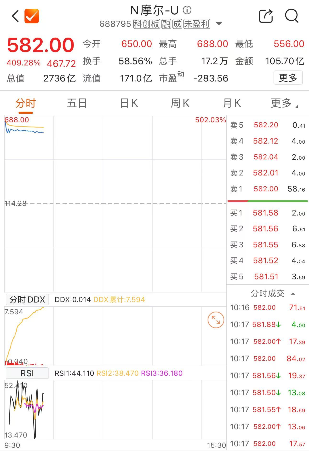 上证报中国证券网讯12月5日,“国产GPU第一股”摩尔线程上市首日高开468.78%,报650元/股,截至10时18分,该股涨近410%,成交额超100亿元。