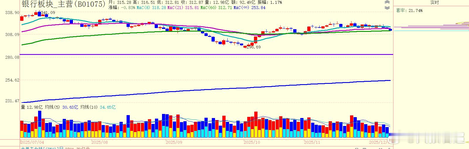 银行板块分时走势真“好看”!银行板块日K线已经连续几天下跌了,要是能跌破临近的均线就好了!