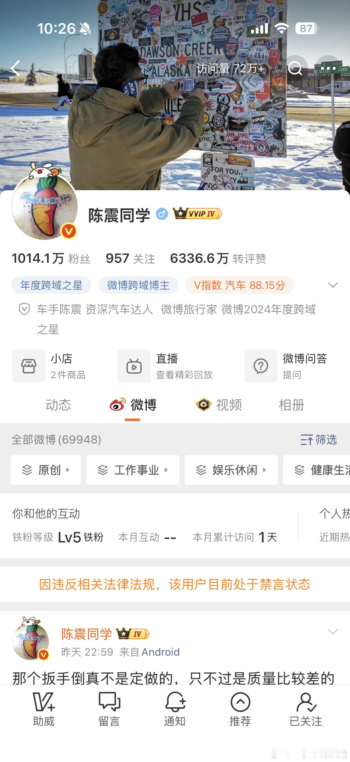陈震多平台被禁言全平台啊…力度也忒大了,谨言慎行,谨言慎行…我真是从小看他长大的