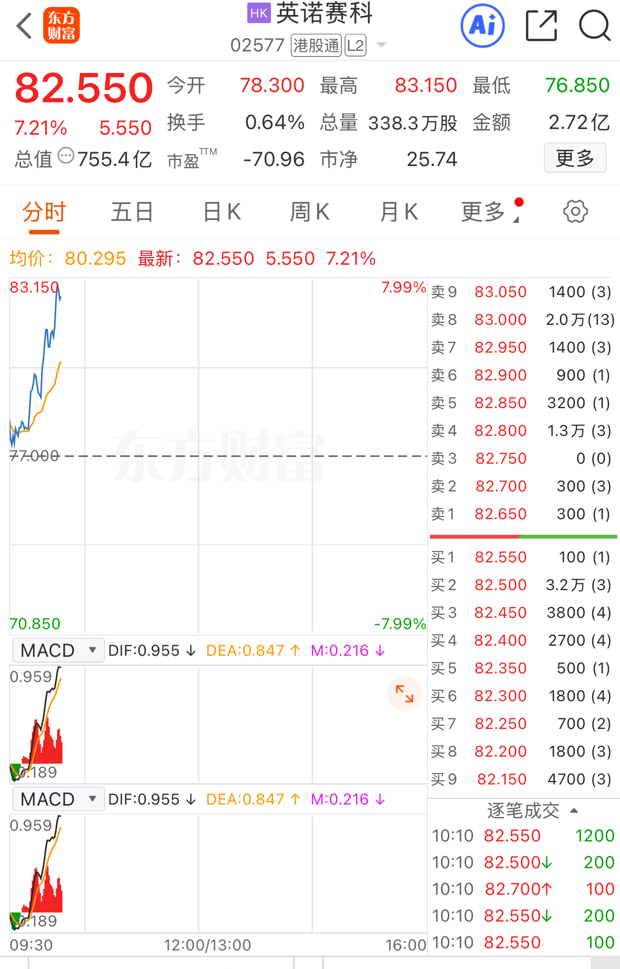上证报中国证券网讯(记者何治民)12月5日,英诺赛科股价震荡走强,涨幅一度接近8%,截至10时10分,该股涨7.21%,报82.55港元/股。