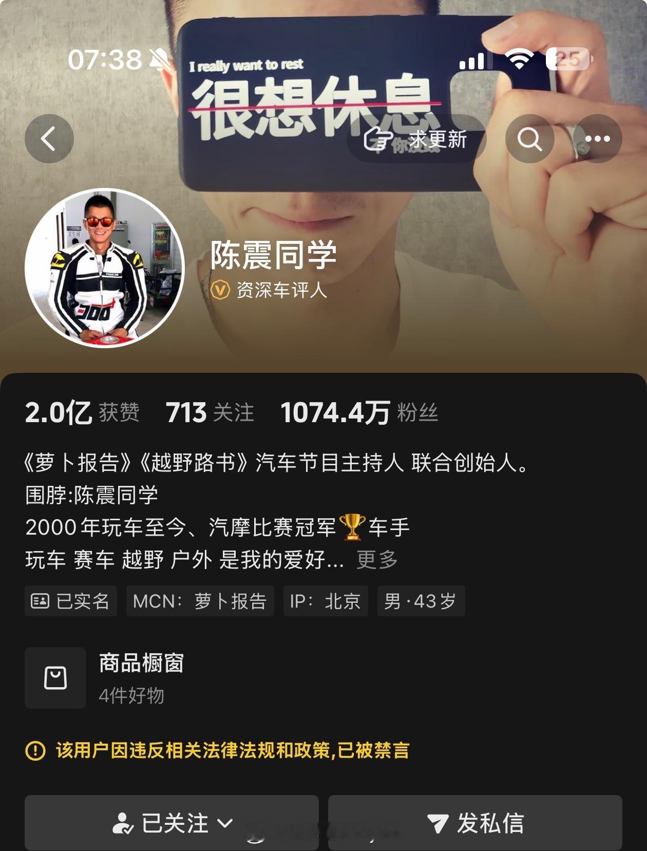 陈震被全网禁言,这是为啥?虽然陈老师的车评我是不咋看的,但还是没想太明白,这是全网啊