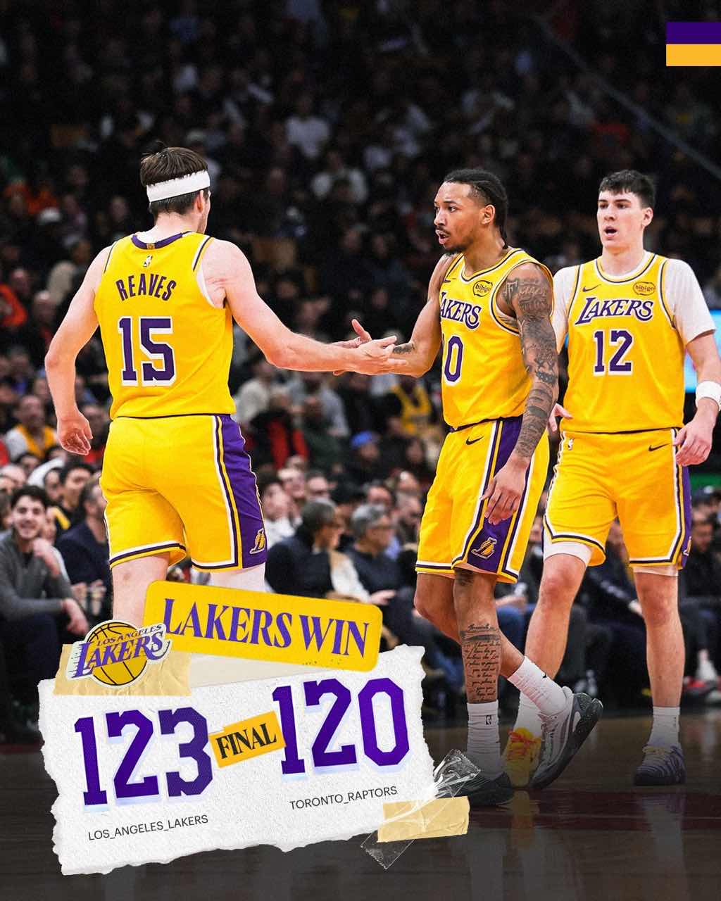 虎扑12月05日讯今天NBA常规赛湖人客场对阵猛龙的比赛已经结束。全场战罢,湖人以123-120战胜猛龙。