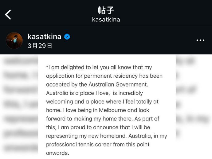 虎扑12月05日讯近日波塔波娃在社交媒体发文宣布自己将从俄罗斯国籍转为奥地利国籍。