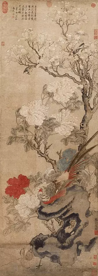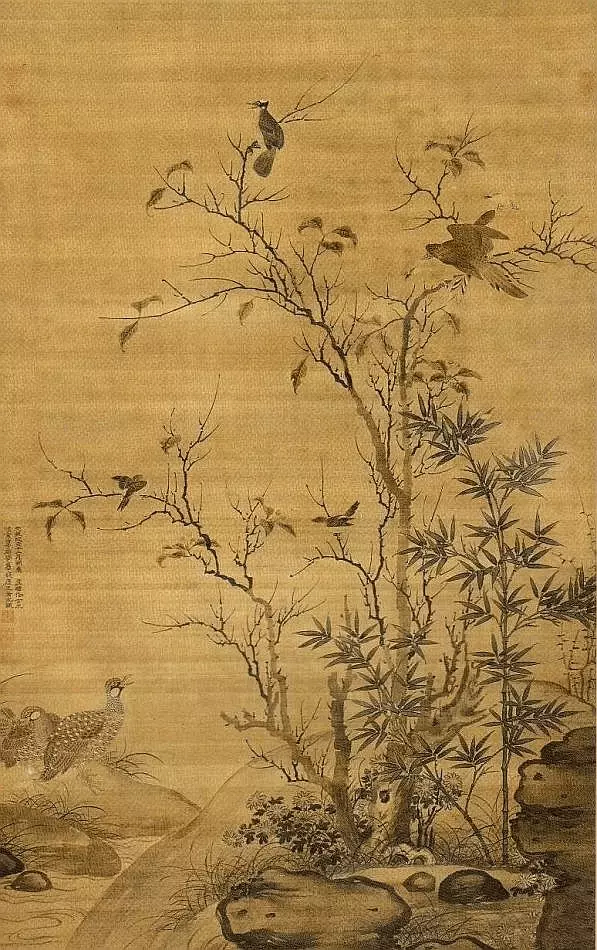 王渊是中国花鸟画由南宋的工笔设色, 向元代的尚逸之风转变的积极参与者。他幼年时曾受到赵孟頫的教授,花鸟画继承黄筌、黄居寀父子,重视写生,先以墨笔勾勒,后以水墨晕染,所染深浅有致,疏密布置也颇有心得。山水学郭熙,人物学唐人,花鸟和水墨竹石尤精。他在元代的画名也非常之高,与钱选齐名。这就是中国风遇见艺术