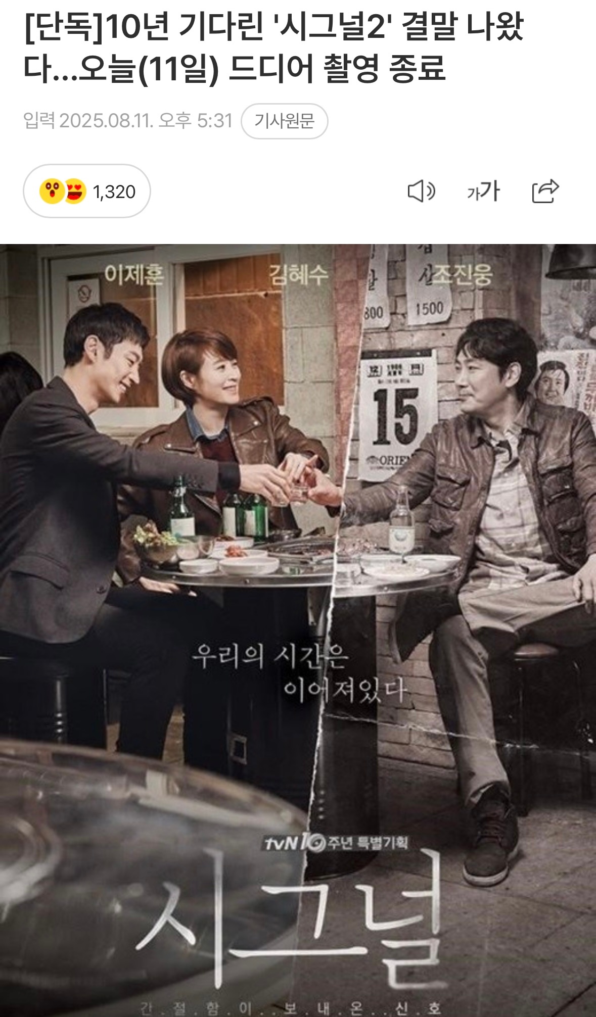 电视剧《信号2》原定于26年上半年播出,由金惠秀-赵震雄-李帝勋主演,8月份已经完成拍摄
