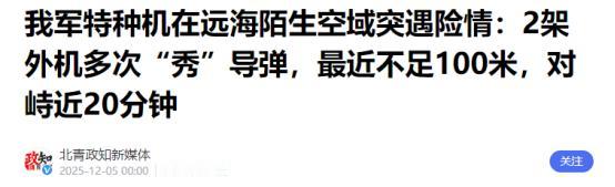 军报头版爆料:我军特种飞机遭外机实弹逼近,僵持20分钟;航母还是太少了。 军报头版这则爆料,看得人后颈一紧——咱们的特种飞机在远海训练时,硬生生跟荷枪实弹的外机对峙了20分钟,最近的时候两架飞机距离还不到百米。 这不是演习里的剧本,是实实在在发生的险情,每一个细节都透着惊心动魄。事情发生在一片远海陌生海空域,咱们的特种机正按计划开展训练,这类任务本来就是去填补远海侦察的空白,相当于在茫茫大洋上安个“移动哨点”。 可谁也没料到,雷达屏幕上突然跳出两个快速移动的光点,两架不明外机直奔过来。更棘手的是,当时这架特种机没有歼击机护航,孤零零地面对带着“家伙”的对手。 外机一点没藏着掖着,飞近了就故意“亮肚皮”,把机身挂载的导弹明明白白展示出来,那意思再清楚不过——这是威胁。它们一会儿盘旋上升,一会儿加速俯冲,一次次逼近试图挤压咱们的飞行航线,座舱里的警报声刺耳得让人手心冒汗。 有老飞行员后来回忆,当时操纵杆都攥得发白,但脑子里只有一个念头:高度1米都不能变,航向1度也不能偏。你想想那个场景,在远离祖国大陆的地方,没有地面雷达的全力支撑,没有战友的直接掩护,对手的机翼几乎就在眼前晃。 但机组没人慌,战术指挥长立刻下令发出语音警告,明确告知“我军正在例行训练,请勿干扰”,同时操作设备记录下对方的挑衅行为。 这20分钟里,每一秒都是心理和技术的双重较量,咱们的飞行员稳着航向,外机绕来绕去没占到半分便宜,最后只能悻悻然转向离开,而咱们的特种机硬是按计划飞到了预定空域,把训练任务完成了。 这事看得解气,但细琢磨就会明白,背后藏着个绕不开的问题——航母还是太少了。特种机之所以会陷入“无护航”的窘境,核心就是远海区域缺少能随时调动的舰载机力量。 咱们的辽宁舰、山东舰更多承担近海防御和周边巡航任务,而远海训练一旦超出岸基战机的作战半径,就只能靠航母上的舰载机提供掩护。要是当时附近有航母编队,舰载机早就升空支援,外机根本没机会这么嚣张地逼近。 好在福建舰的入列让情况有了转机。这艘搭载电磁弹射技术的航母,能让预警机、战斗机满油满载起飞,作战半径和反应速度都大幅提升,探测范围能延伸到印度洋、西太平洋这些远海区域。 以后三艘航母形成互补,一艘执行任务、一艘维护、一艘待命支援,咱们的特种机、轰炸机再去远海训练,就能有舰载机跟着护航,形成一张立体的防护网。 这些年咱们的海空力量一直在进步,特种机部队把每次与外机的对峙都当成实战历练,记录对手战术、研究应对方案,早就练出了“升空即迎敌”的硬本事。 但强军路上从来都是硬件软件一起抓,战机飞得再远、飞行员再勇敢,也需要航母这样的“移动基地”托底。军报披露这段险情,不是要炫耀什么,而是想告诉大家,祖国的海空从来不是风平浪静,守护这片深蓝靠的是每一位官兵的硬骨头,也靠的是国防力量的不断升级。 随着更多航母形成战斗力,那些想在远海给咱们添堵的外机,迟早得掂量掂量——中国的海空,不是想来就能撒野的地方。