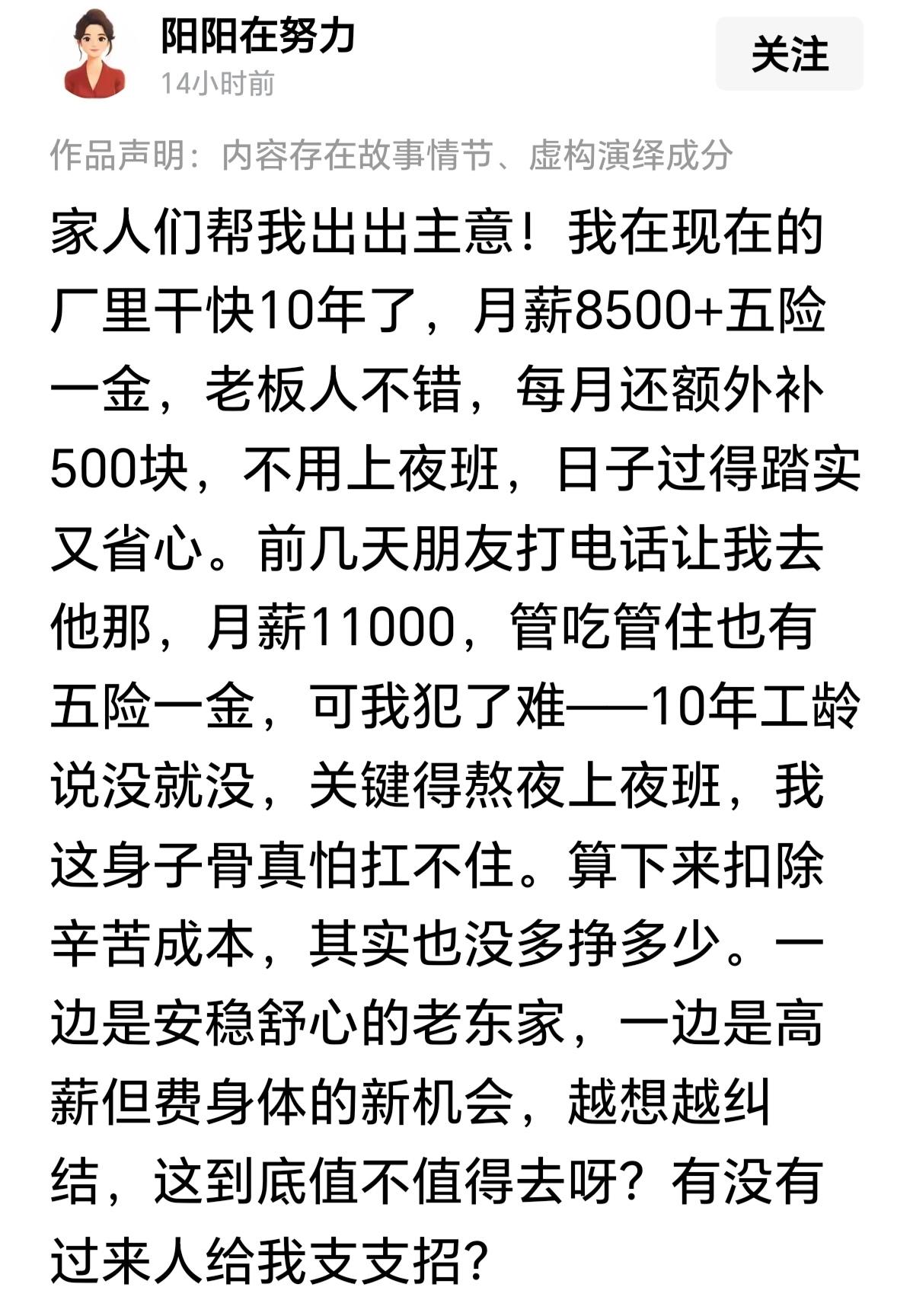 已经有9000+五险一金,老板十年如一日的照顾你,你还想干什么?为了多2000块,去冒风险,值得吗?老板虽不是你的朋友,但在这方面,远远超过你的朋友。世界上,最不靠谱的,就是所谓的朋友。二选一的情况下,我选择8500+五险一金。