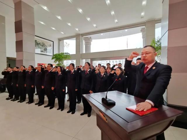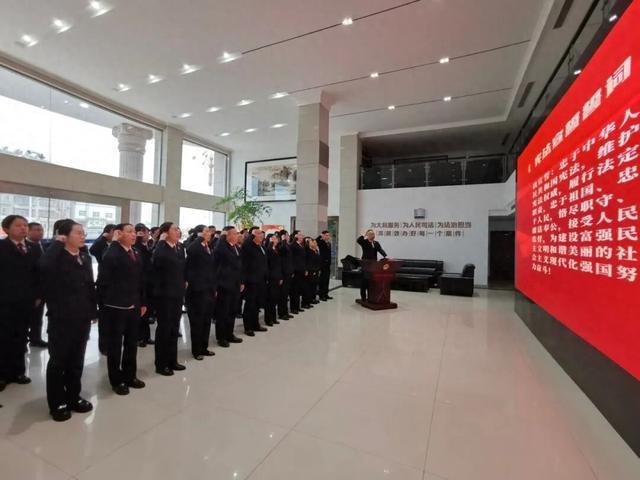 宣誓仪式于上午8时30分准时开始,现场气氛庄重,检察人员身着整齐检察制服,精神抖擞。