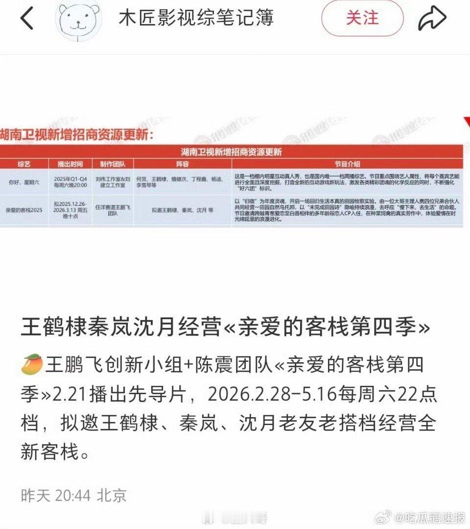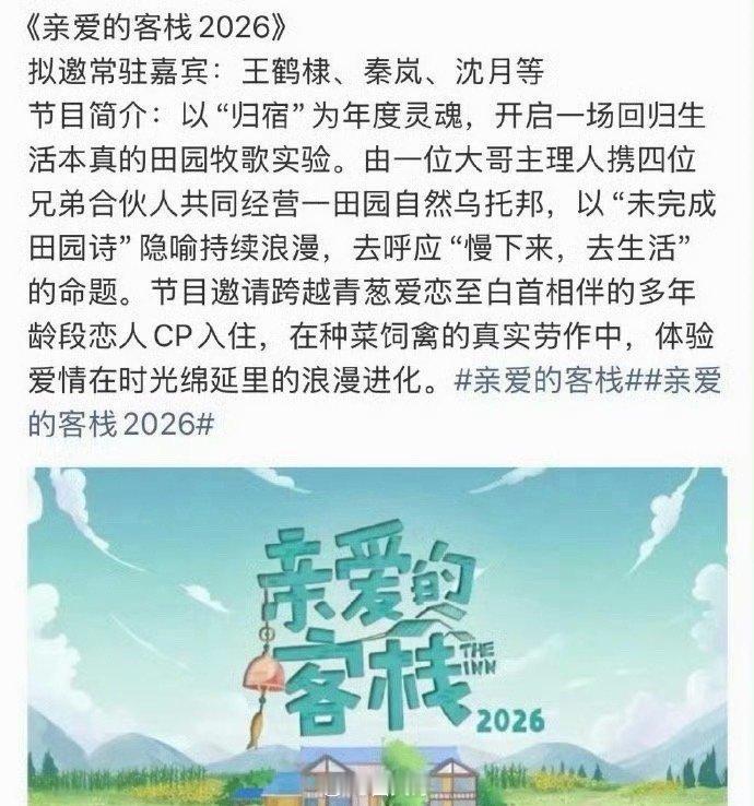 棣月系cp复活,原来是要二搭了~王鹤棣、沈月将一同录制亲爱的客栈2026。真人版