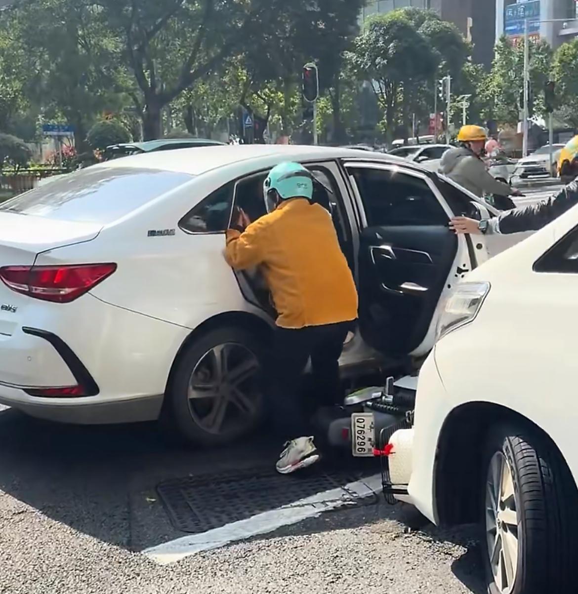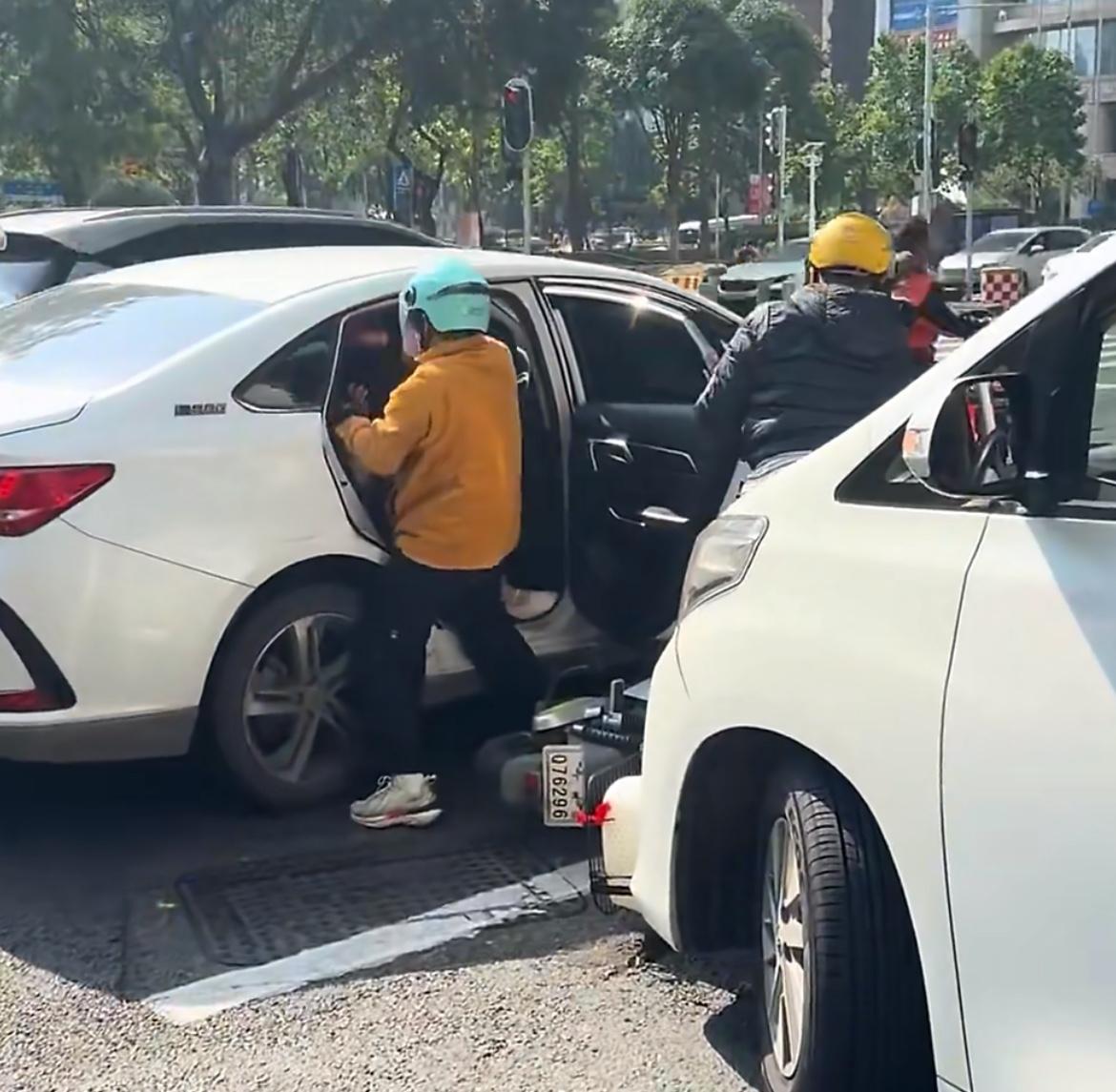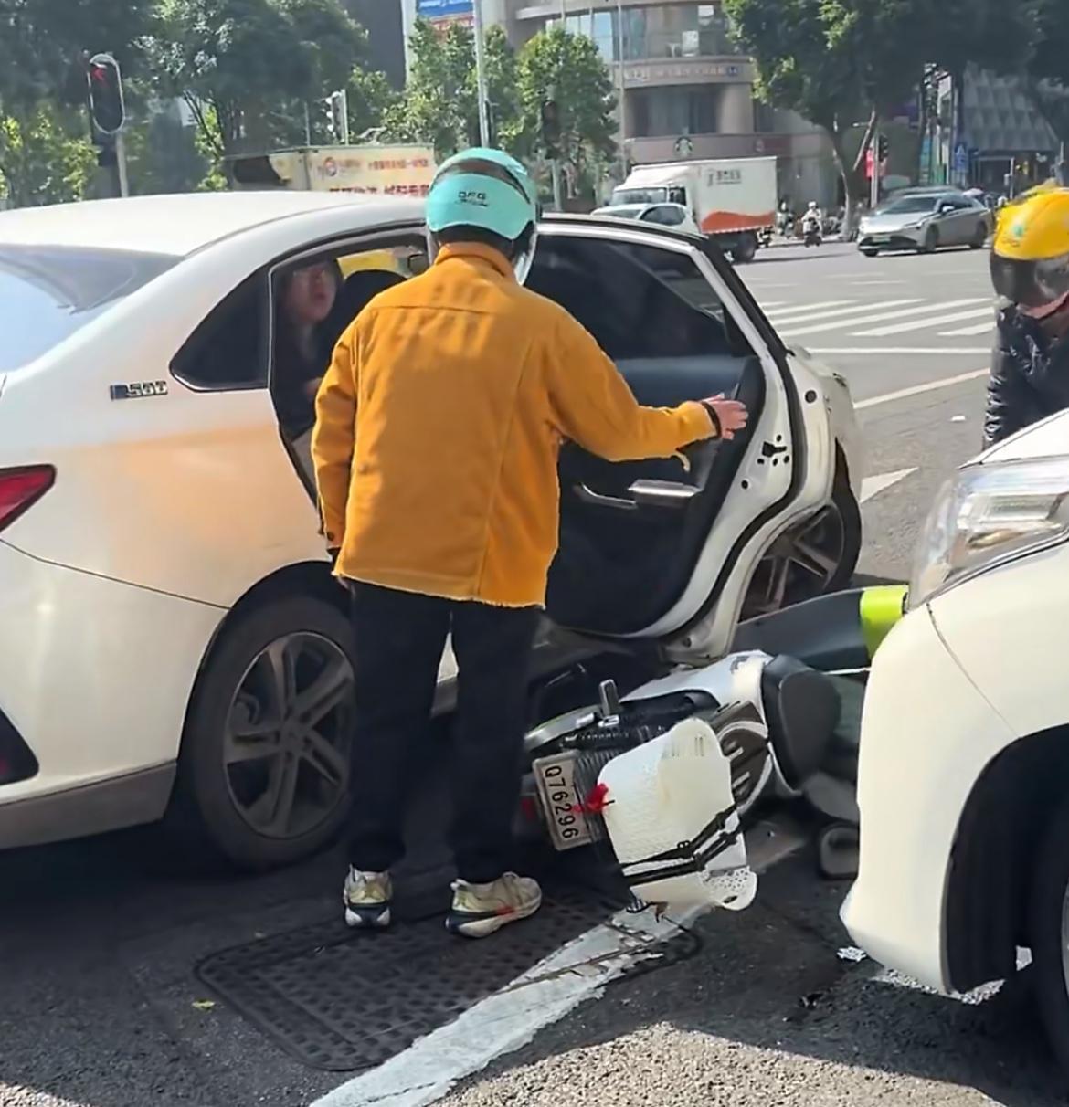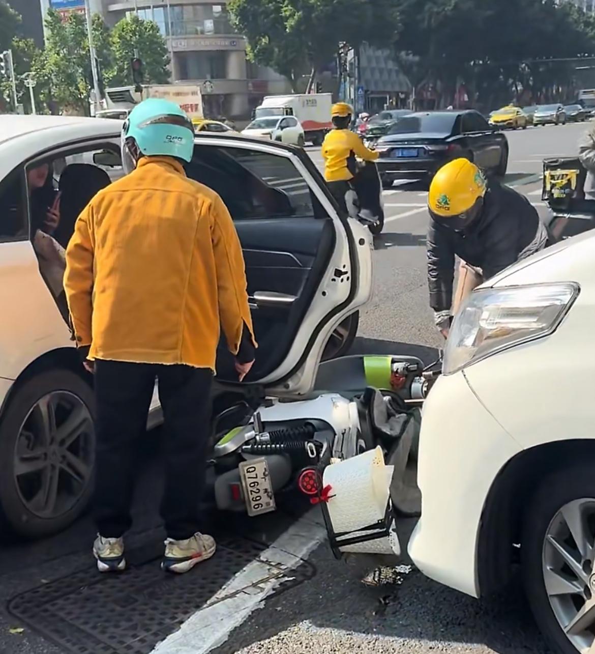 广州体育西路大姐遭遇开门杀,差点被侧面的车碾压,可是肇事的小仙女却不愿下车。应该是网约车,看停的地方不对,大姐骑电瓶车路过,小仙女开门不看后方,车门刮倒电瓶车,大姐摔倒,这时侧面来车,还好车辆及时刹住,要不然大姐就交代了。开门杀真的是电瓶车最大的威胁之一,骑车一定要远离停在路边的车,至少保持一米以上距离。