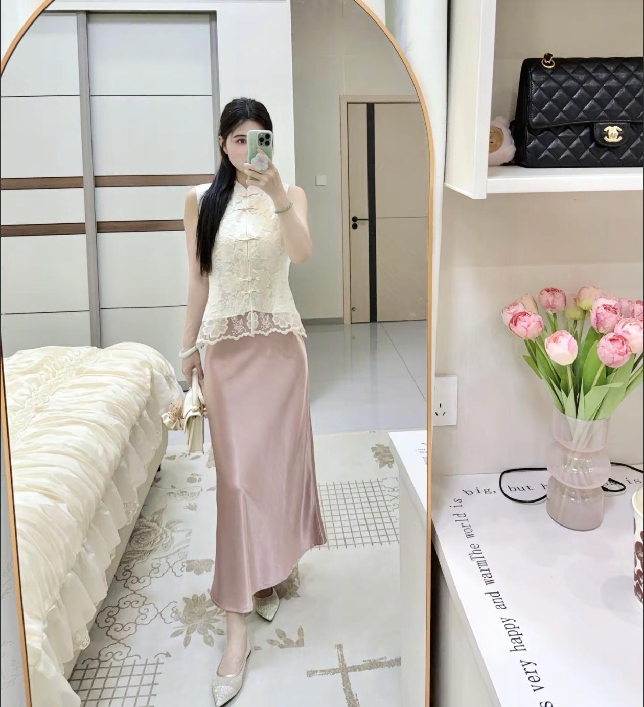 优雅气质穿搭,白色上衣+蓝色长裙,简约而不失时尚!