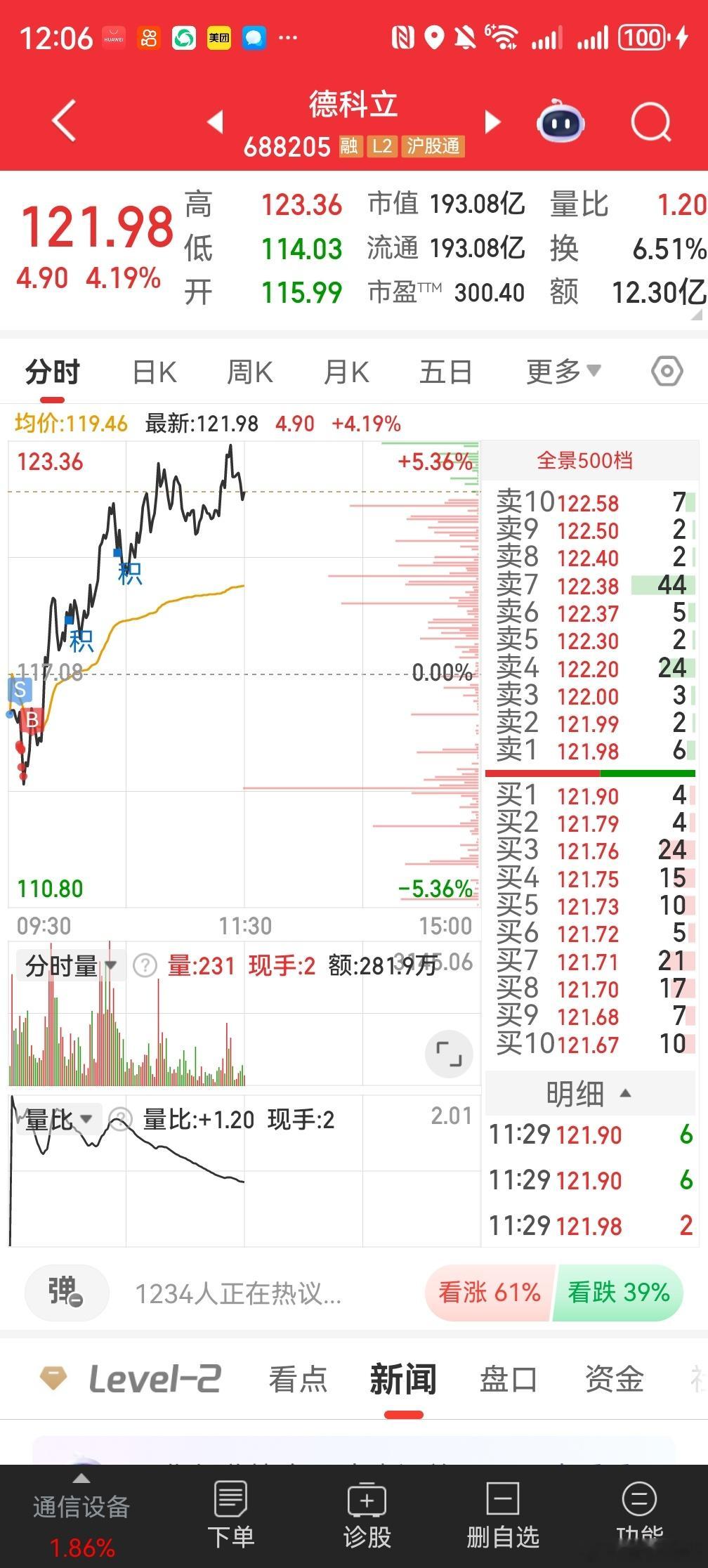 德科立仓位不多了,每天做T,谷歌这条线不能丢,早上赛微电子急跌抄了底,涨起来太快没法提示,不过昨天在评论区做了回复赛微今天急跌会抄底,高波动股的价值在于极限杀跌和拉升之间,是练手的好机会。