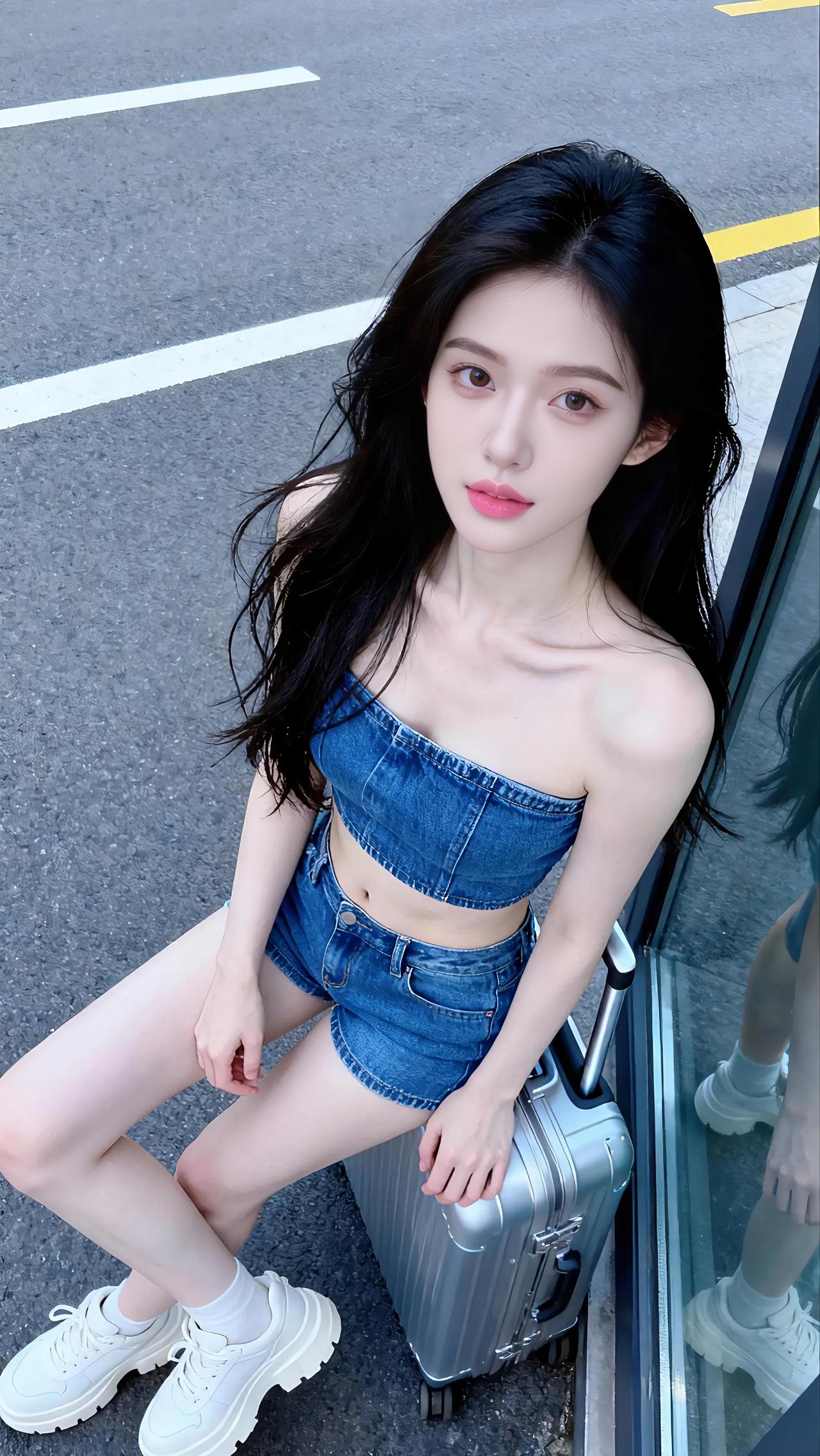 这姑娘打扮得真时尚,拎着行李箱出门了。随手拍张图,分享美好瞬间 挑行李女孩 时尚旅行包女 行李箱上的女孩 旅行小背包女 美女行李箱 女生提行李 女孩行李箱