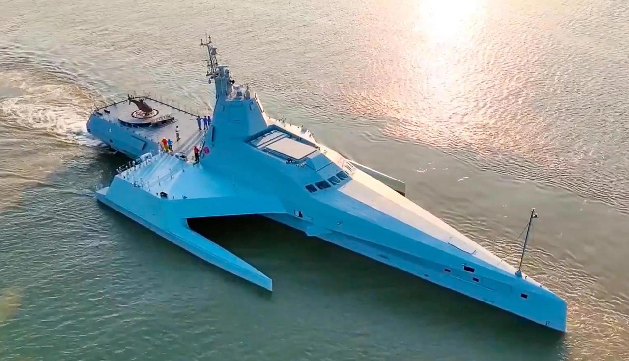 天上有可同六代机和双座型五代机协同作战的无人僚机,地上有可与有人驾驶坦克和装甲车并肩行动的无人僚车,那海上自然也会有与有人军舰共同行动的无人僚舰。在今年的9•3大阅兵中,首次获得官方公开的无人作战艇,就是我们于此领域的答案之一。请注意,是“之一”。原因很简单,一些“更好且更先进的大玩具还在纷至沓来”。 据美国防务媒体“战区”报道,中国某港口内出现了一款通体黑色、带有明显的半潜船特征,且疑似采用三体构型的无人船只。如此复杂的技术特征,基本证明其并非民用船只,而是更接近于验证或测试某些技术的军用平台,不排除该船会在未来成为解放军海军的某型制式装备。 我们知道,军用无人舰艇在这几年中,成为了中美等世界级军事大国竞相发力的一大新赛道,美国甚至提出要打造一支以无人舰艇为主要装备的“幽灵舰队”。而在中国这里,得益于无人装备工业和电子通讯技术的快速发展,我们也取得了不少进展。如今看来,这款无人三体半潜船应该就是其中之一。 从国内互联网上的猜测来看,许多人认为其应该是一款以搭载垂发系统为主,且具备一定的自主航行能力的百吨级战斗舰艇。但该船究竟有无自主作战能力,恐还需要打上一个不小的问号。毕竟,现代船电系统虽小巧且精密,但也并非一艘百吨级舰艇就能搭载的。况且,越是用途多、探测范围广、可同时应对多个来袭目标的船电系统,就越需要占用较多的船体空间和吨位。若是在百吨级舰艇上安装如此全面的船电系统,那就别想再同时装载垂发系统和弹药了。 因此,这款体量有限的无人三体半潜船,极有可能需要在一定程度上依赖有人驾驶舰艇的指挥,特别是要靠有人驾驶舰艇完备的船电系统,来完成目标发现与锁定,以及导弹类武器的制导等,才能实现有效作战和对目标的毁伤。显然,这也符合未来“有人驾驶舰艇+无人僚舰”协同作战的体系化要求,可能性不低。进一步来想,谁会成为这款百吨级无人舰艇的“母舰”呢?恐怕唯有055型万吨大驱和未来吨位更大的国产新型水面舰艇,才有能力对其实现内部装载。 毕竟,百吨级无人作战舰艇的自持力很有限,难以像万吨级有人驾驶舰艇那般赴远洋开展行动。故在实际运用过程中,以大吨位有人舰艇对其进行装载,在战区附近水域放下无人舰艇并启动协同作战,或是一种可行的解决方法。而在这方面,比055型舰小一个量级的如052D型驱逐舰和054A型护卫舰,恐很难有充裕的舰内空间来携带百吨级无人作战舰艇。这就是为什么说,可能只有055型舰和更大的未来国产神盾巡洋舰,才有可能成为此类无人装备的“母舰”的原因。 下一个时代的中国海军究竟会是什么样子,越来越值得我们期待了。