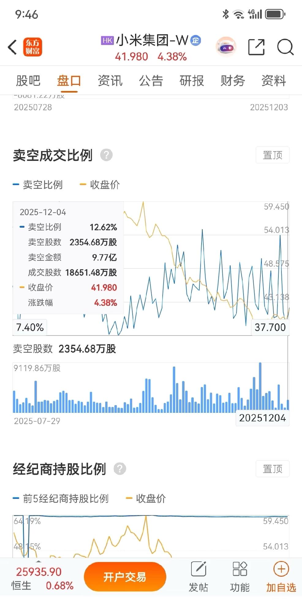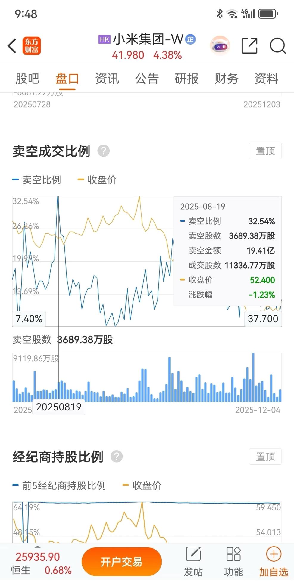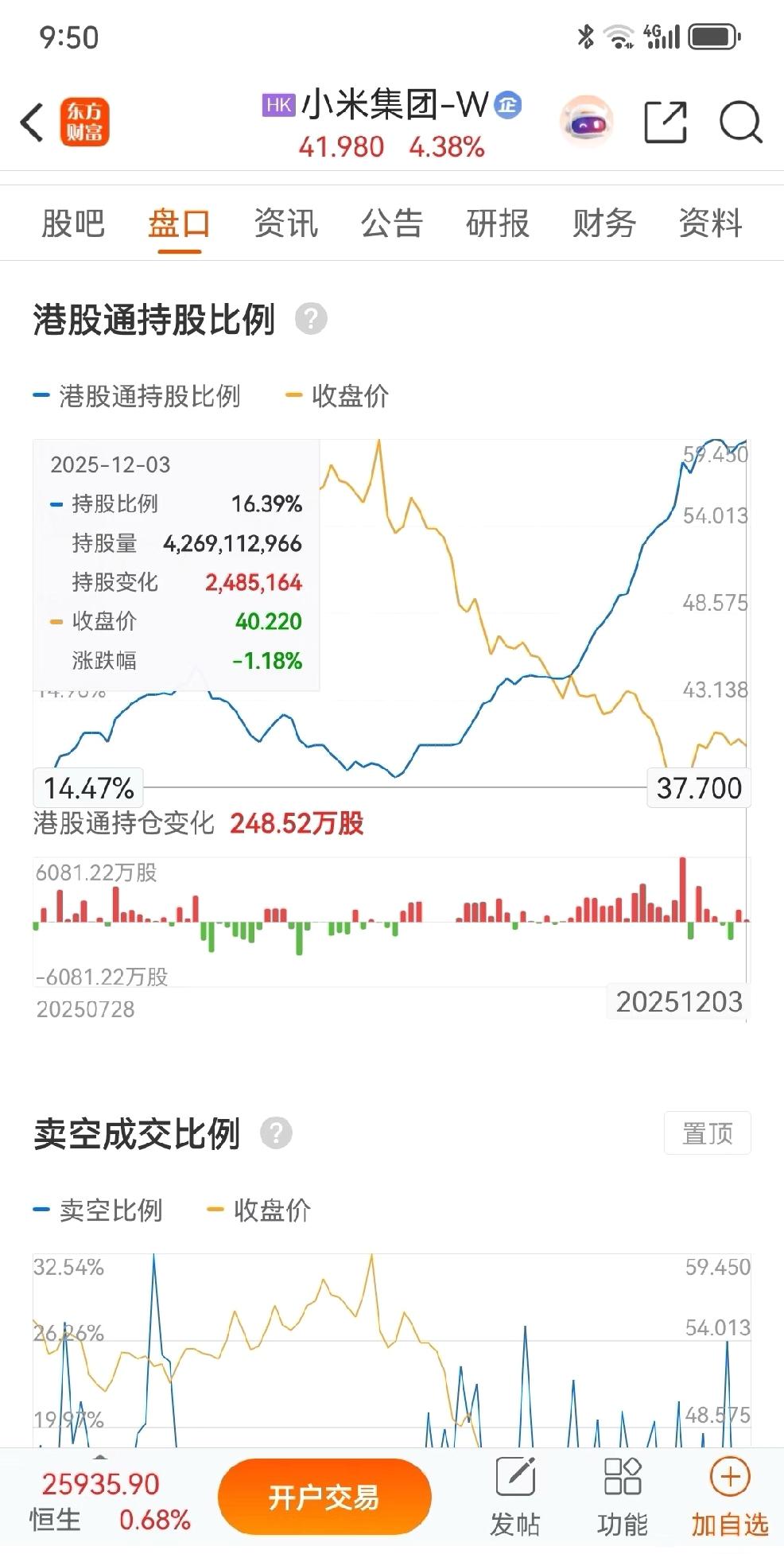 小米真的很刚,算上雷军的个人回购,在最近两周累计9次回购,差不多25亿。 港股通持仓比例上涨到16.49%,做空比例下降到12.62%。 维护股价的决心坚如磐石,不像A股市场的回购,更多是象征意义。 相信小米。