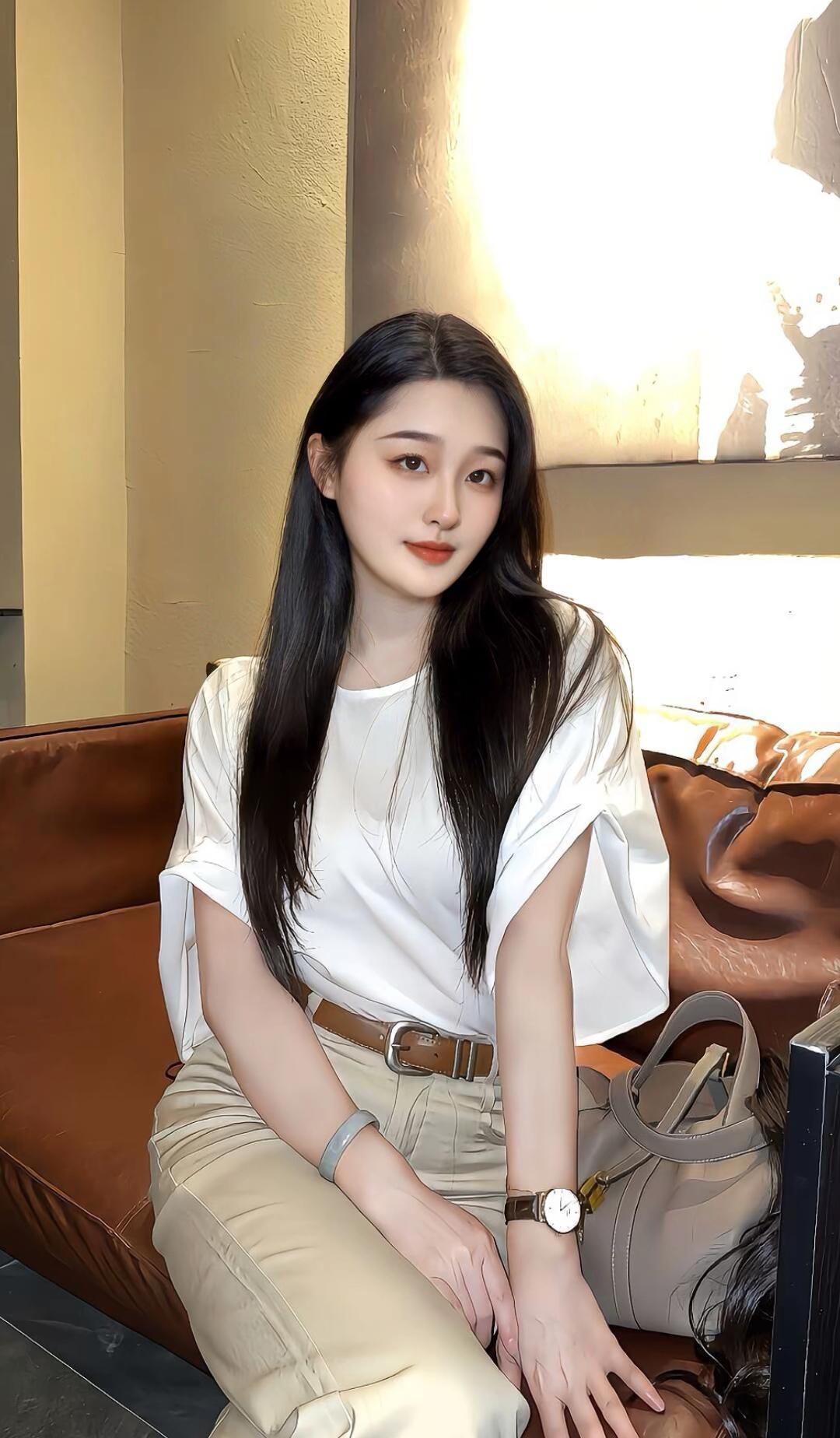 温柔优雅的白色连衣裙,搭配棕色腰带,尽显时尚与优雅。