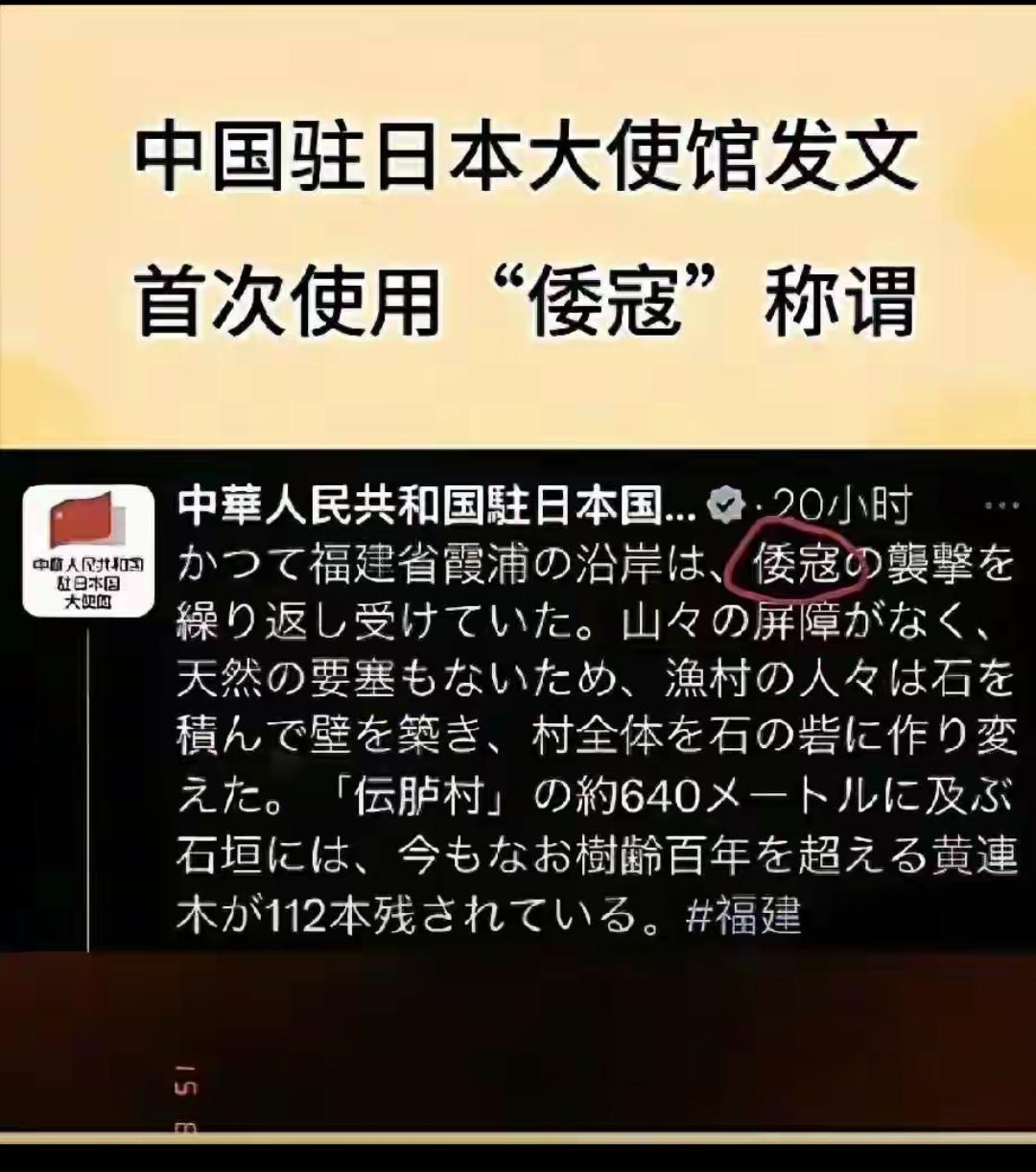 谁能想到,日本首相的一句狂言,竟让沉睡数百年的“倭寇”二字重归公众视野?这哪里是外交反击,分明是日本右翼亲手打开了历史的封印。 高市早苗叫嚣“台湾有事即日本有事”,转头中国驻日使馆就亮出福建传护村的抗倭石墙。那640米的石头堡垒,刻着的是先民抗倭的血泪,更是中华民族对侵略的集体记忆。 “倭寇”从不是单纯的历史名词,而是对侵略行径的定性——从明代烧杀抢掠到近代全面侵华,本质从未改变。中国向来以史为鉴,但宽容绝不是纵容。 如今50万张赴日机票退订,就是最真实的民意:我们不记仇,但绝不忘痛。日本真以为强硬能施压?殊不知唤醒的是十四亿人的民族意志。 你觉得日本该正视历史还是继续执迷不悟?来评论区聊聊你的看法~