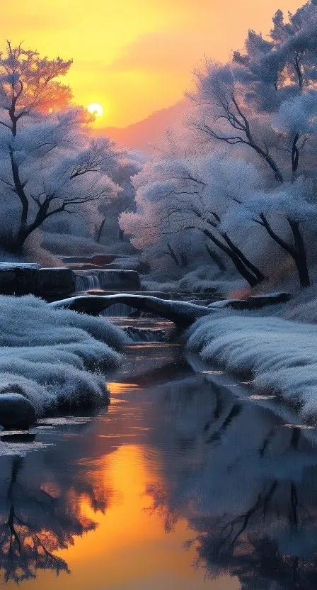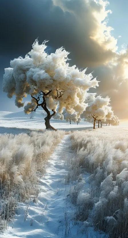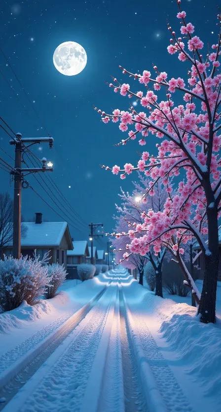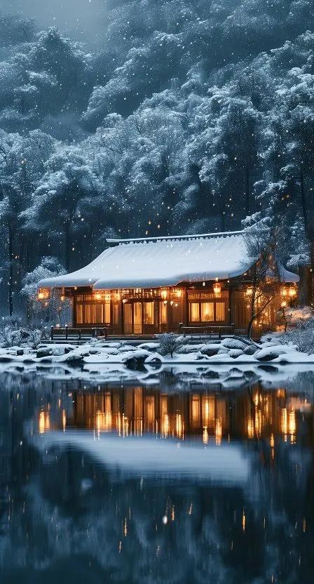 卜算子//冬雪 寒夜朔风嚣,素影天间降。若絮如花朵朵飘,悄把乾坤酿。 枝桠挂琼瑶,山野披银蟒。待至晨晖映雪时,幻作仙乡赏。